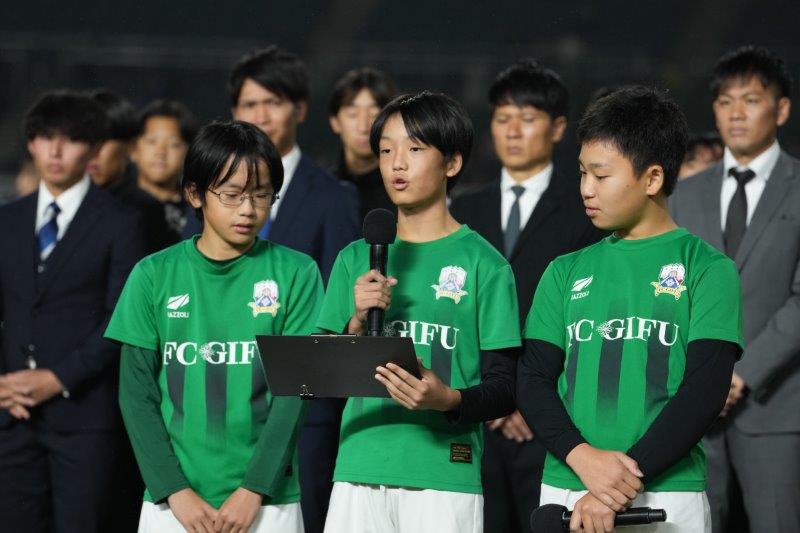 まず初めに、FC岐阜ファミリーを代表し、FC岐阜サッカースクールの3名が挨拶をさせていただきました。