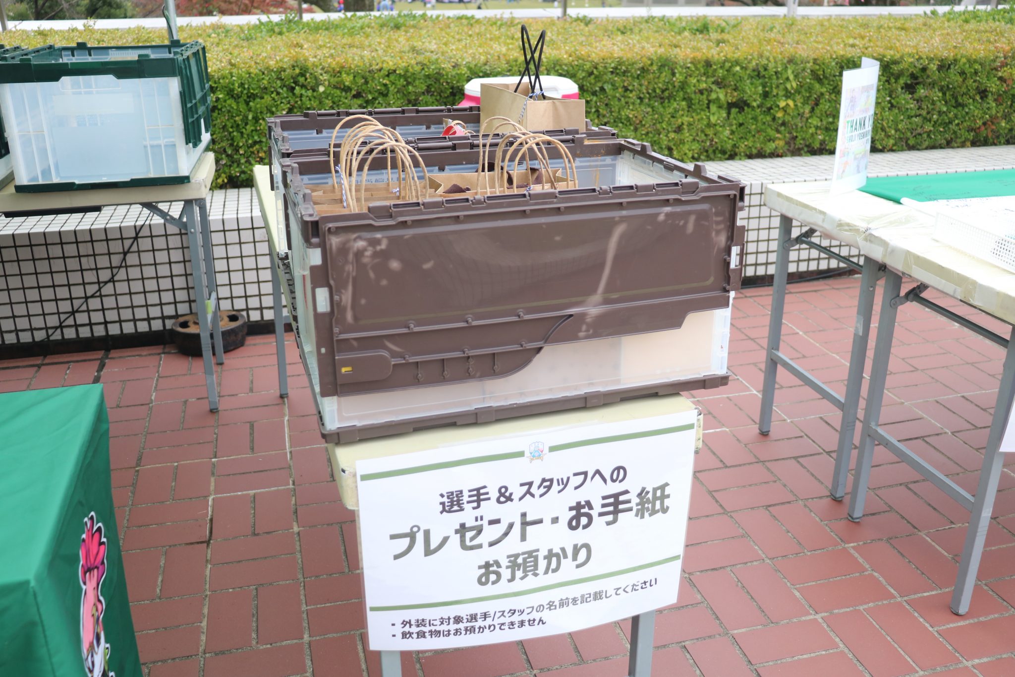 選手・スタッフへのプレゼントお預かりブース