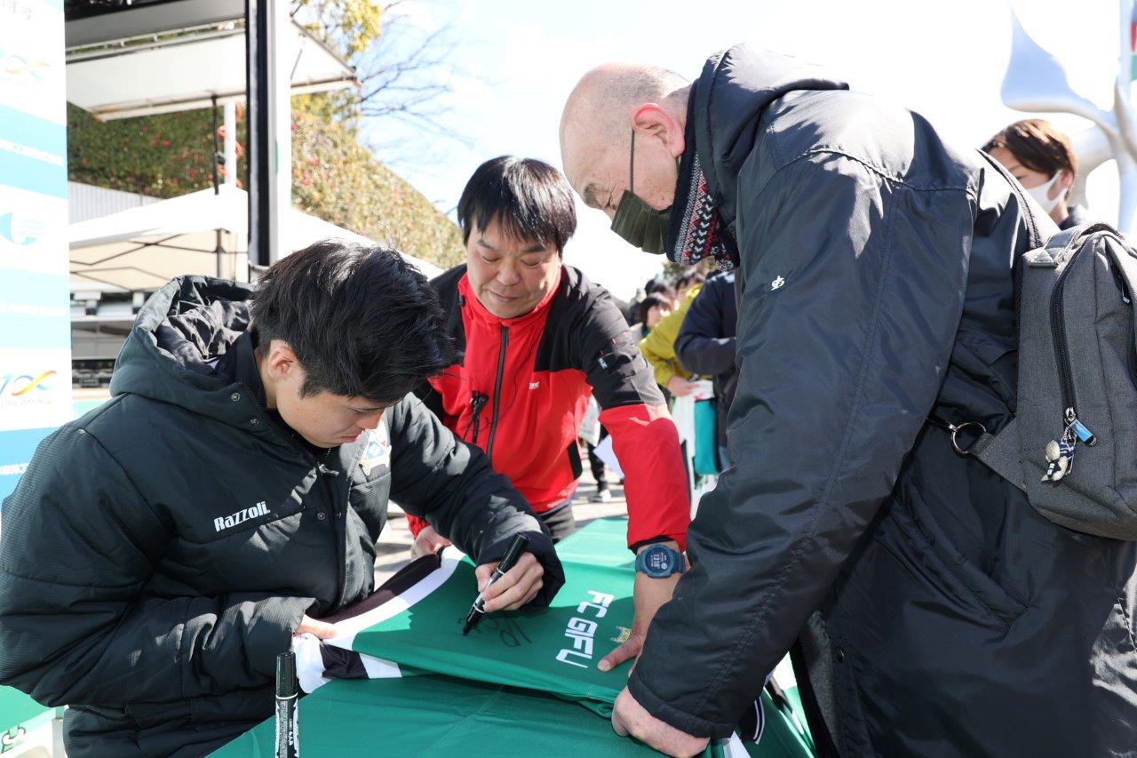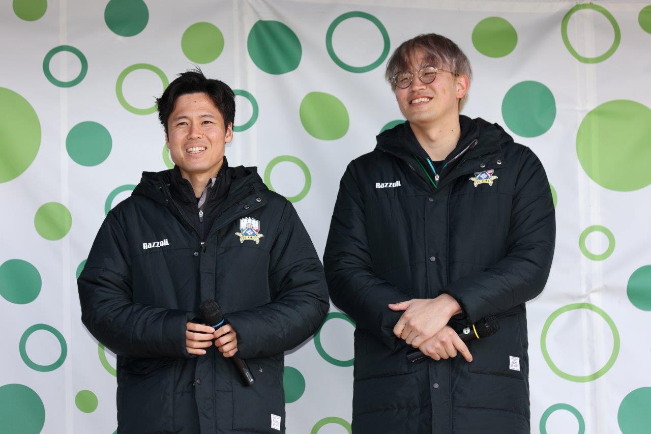 元FC岐阜キャプテンで、現クラブスタッフの庄司悦大さんもブースに立って直接お預かりいたしました。