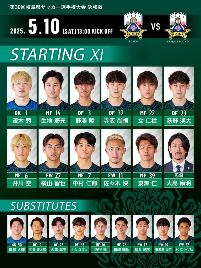 ※この試合に勝利したFC岐阜が岐阜県代表として「天皇杯JFA 第105回全日本サッカー選手権大会」へ出場します。