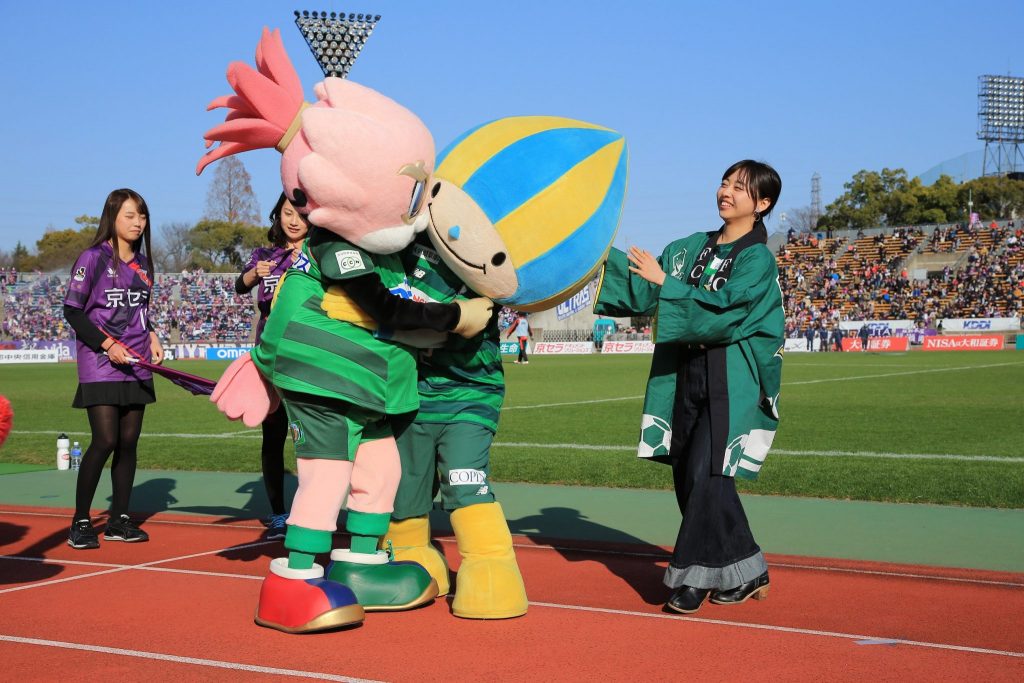 FC岐阜応援マネージャーの伊藤寧々さんも西京極スタジアムに登場!サンガキャンパス隊と一緒にトークショーや写真撮影会を行いました。