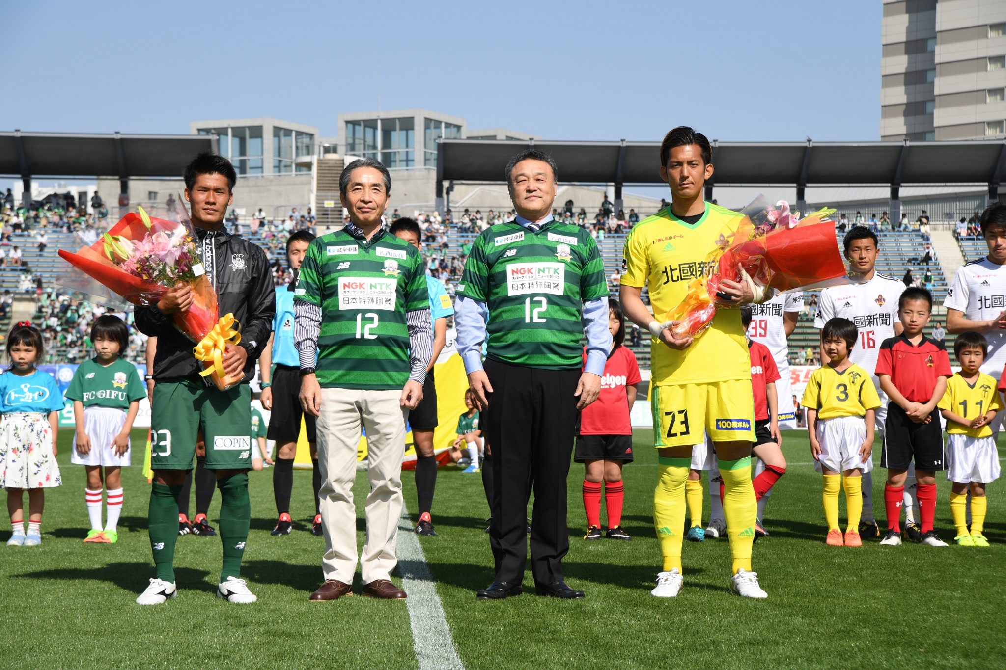 難波宏明選手 J2通算300試合出場達成記念セレモニー