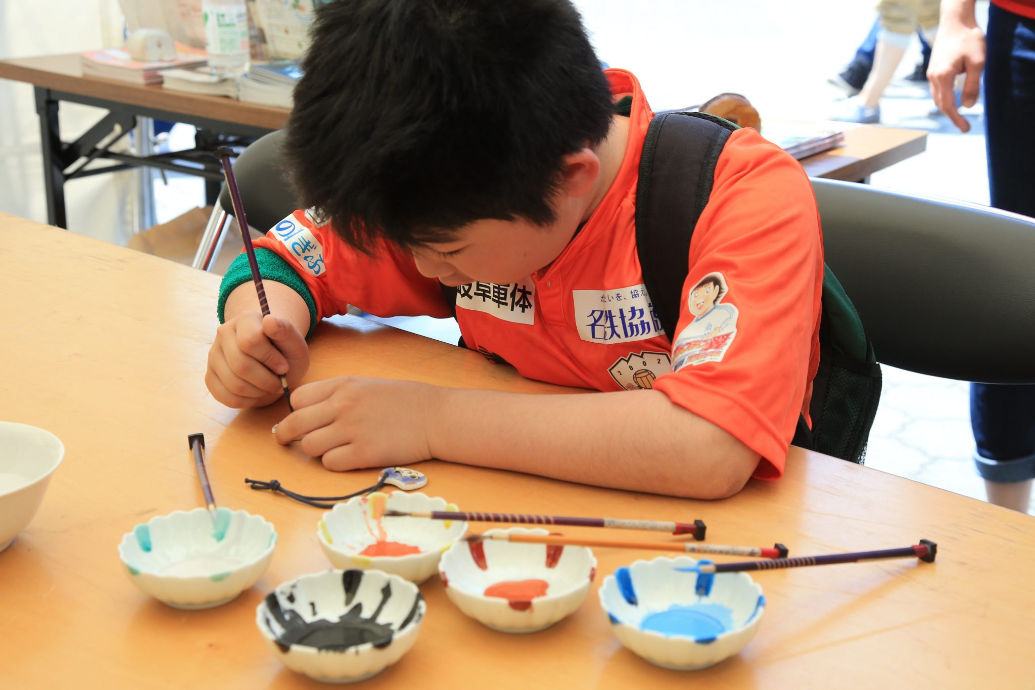 陶器の絵付けのワークショップや、陶器の特売会が開催されました!サッカーボールの絵柄のお皿も大人気でした。