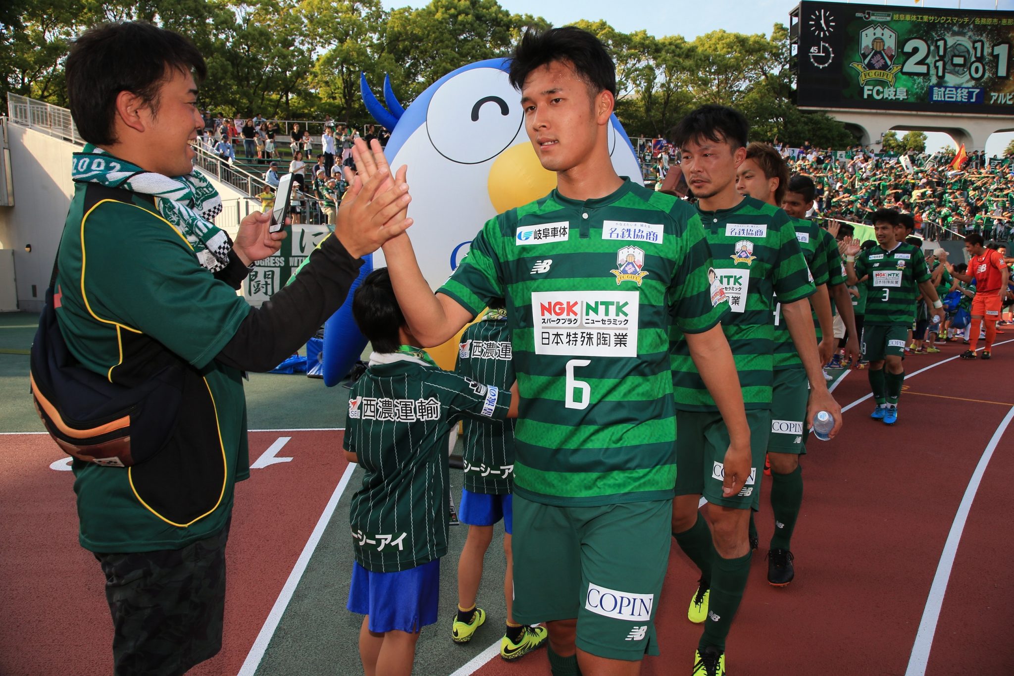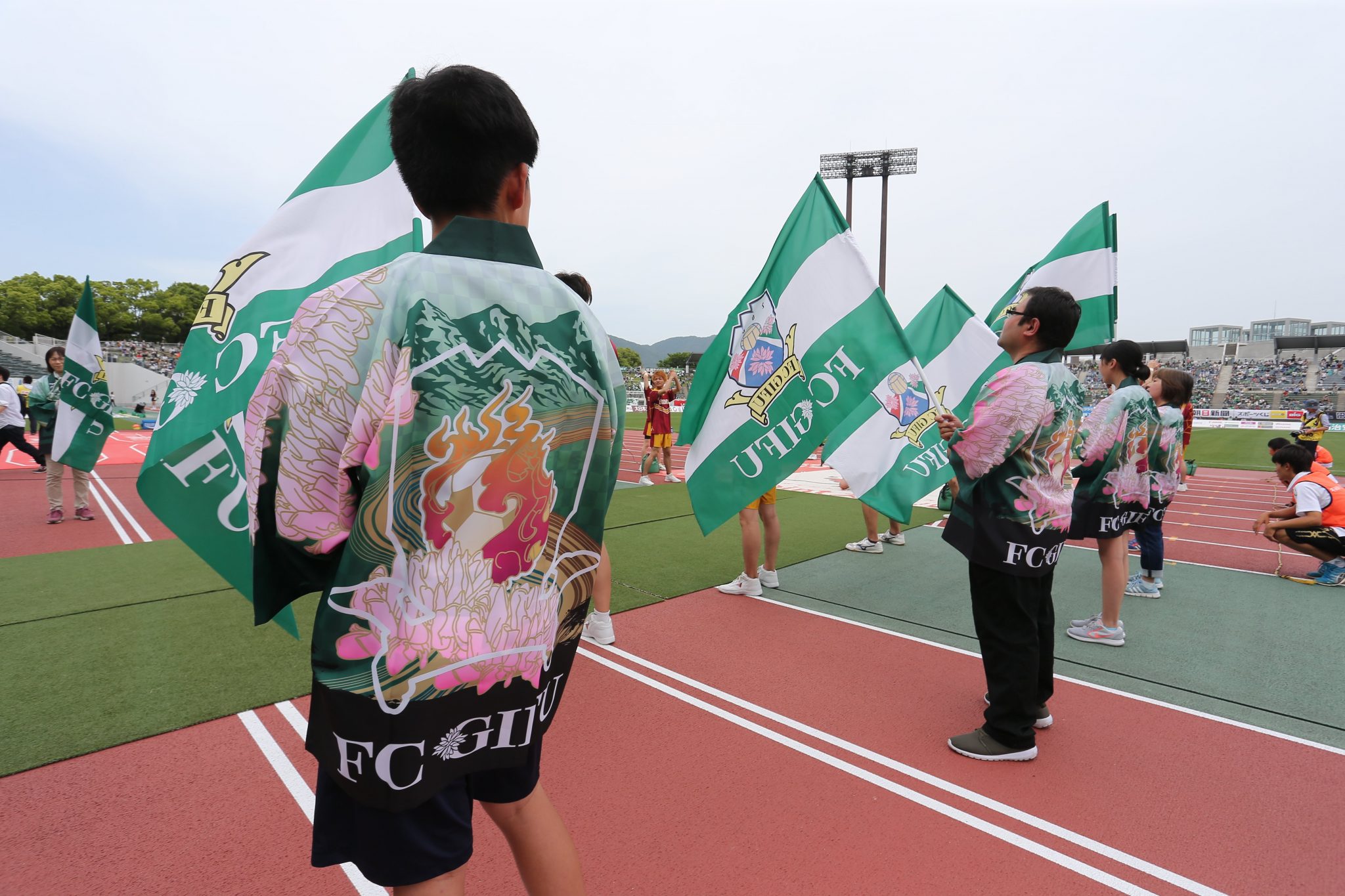 花道フラッグ隊では、FC岐阜のフラッグをもって選手の入場をお出迎え。選手の入場をピッチ内の間近で見れる貴重な機会に、皆さんの顔もキラキラしていました♪