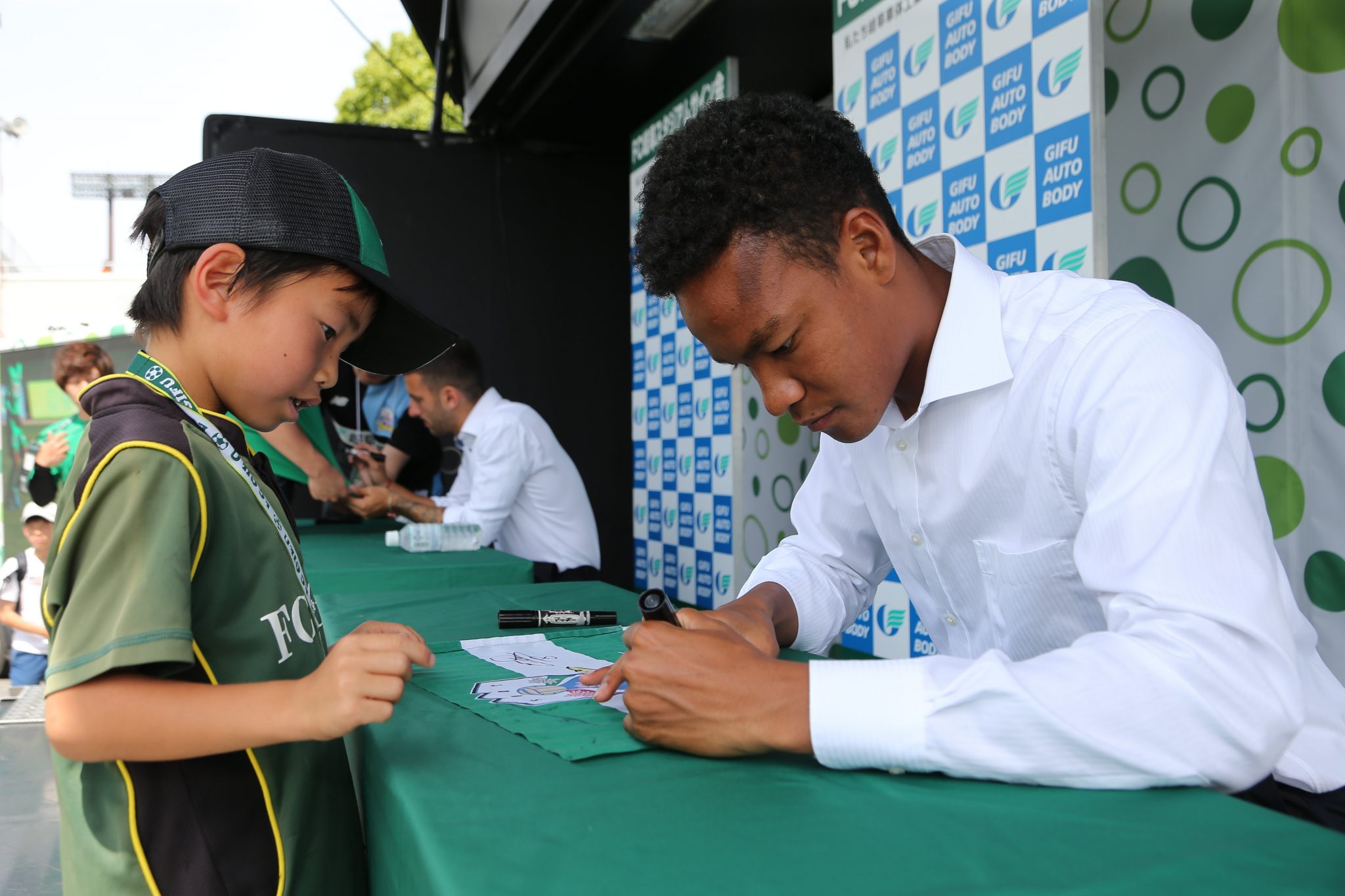 FC岐阜サッカースクールの入校式がおこなわれました。青木翼選手も登場して子どもたちと記念撮影!