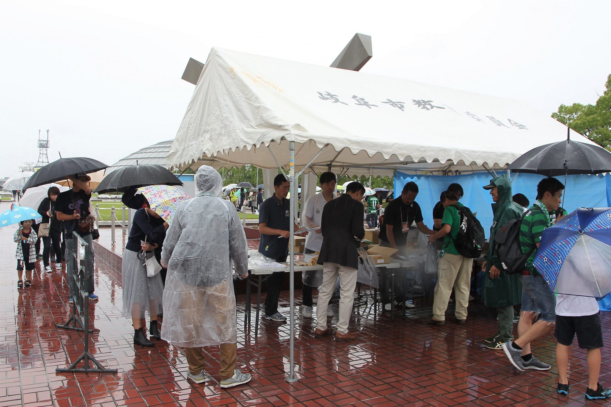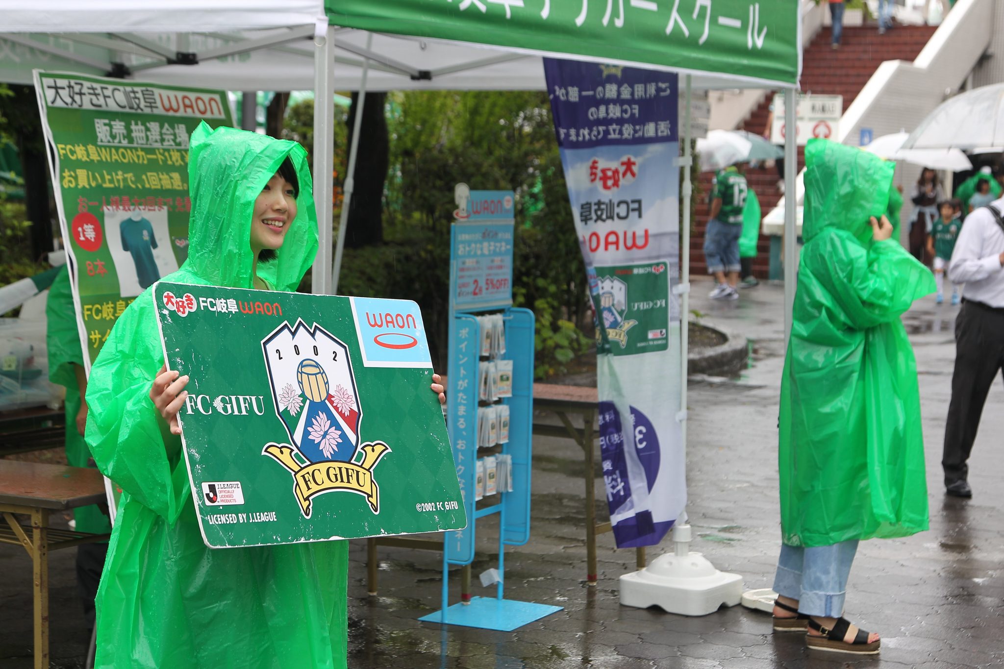 岐阜市ホームタウンデーを記念して、岐阜市民を無料でご招待!先着3,500名様には「ギッフィー×うーたんコラボ」ハンドタオルと、「FC岐阜×岐阜市コラボ」応援小旗をプレゼントしました!キックオフが近づくにつれて、チケット引き換えブースには長蛇の列が。雨の中ではありましたが、多くの岐阜市民の方にご来場いただきました。ありがとうございます。
