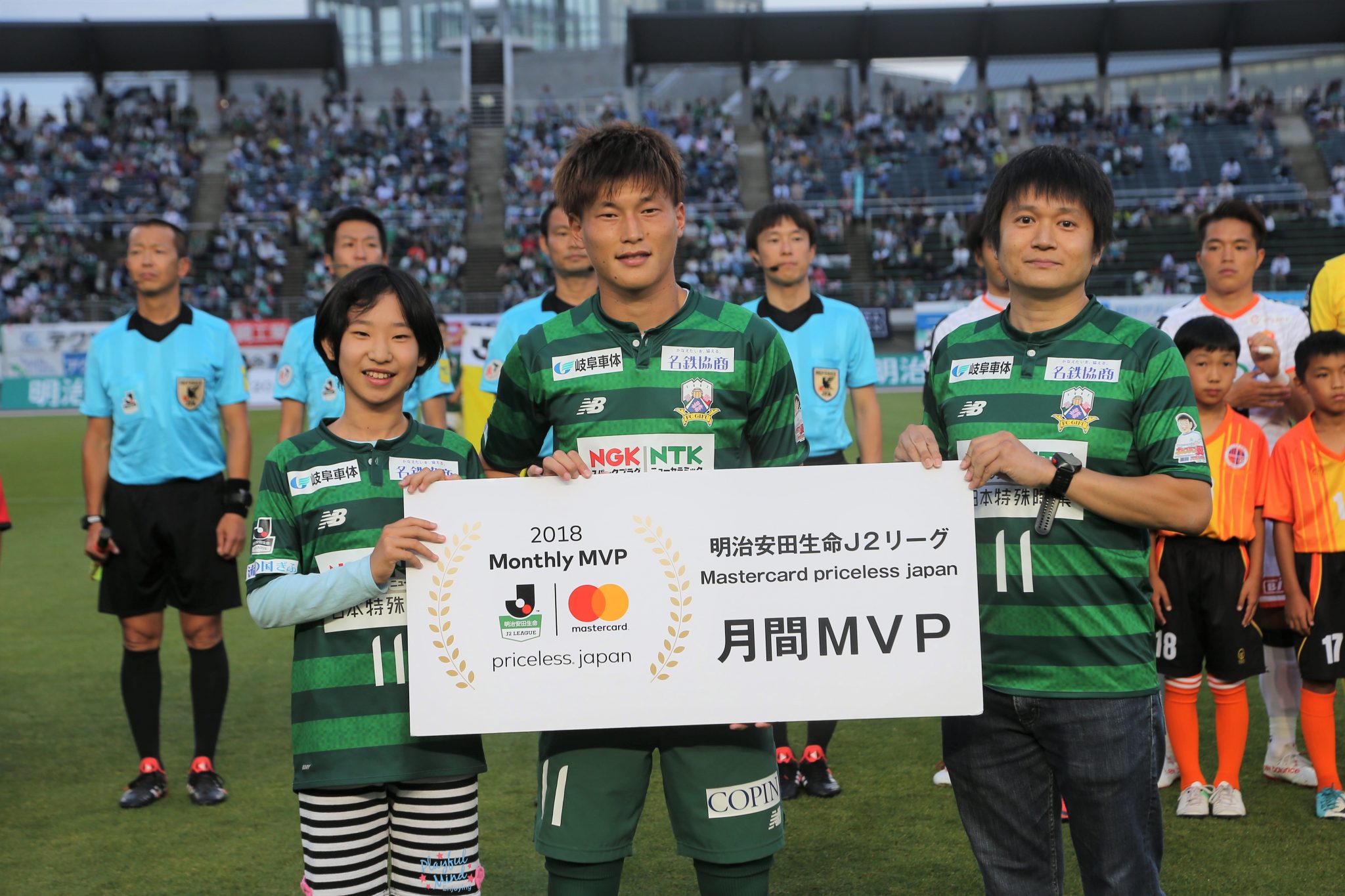 FC岐阜からクラブ史上初の月間MVPに選出された古橋亨梧選手。これを記念してキックオフ前のセレモニーで表彰式を行いました!