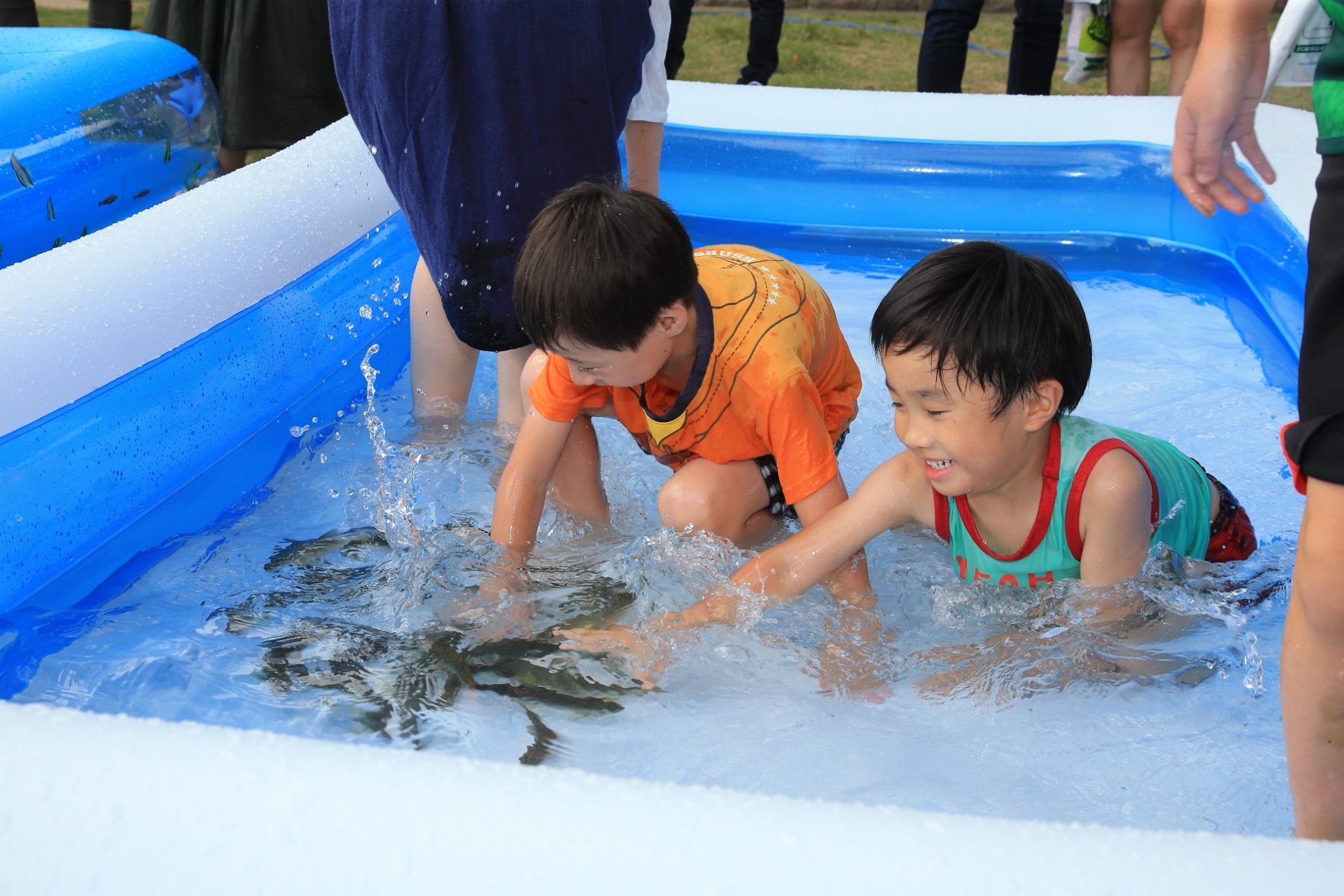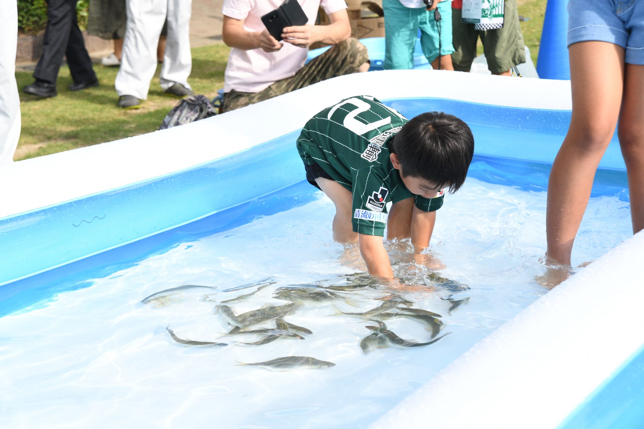 清流長良川あゆパーク様のご協力で、鮎のつかみとり体験をおこないました。参加した皆さんはプールの中で動き回る鮎に悪戦苦闘しながらも必死に捕まえていました!