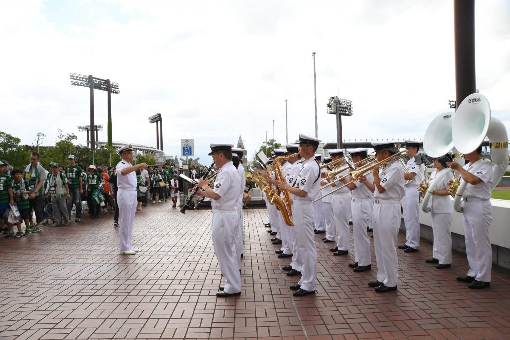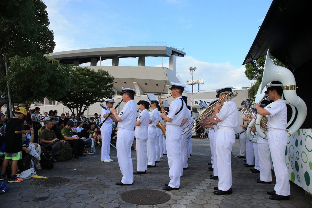 舞鶴音楽隊の皆さんに、入場口や、スタジアム、ステージで規律正しい演奏を披露していただきました。