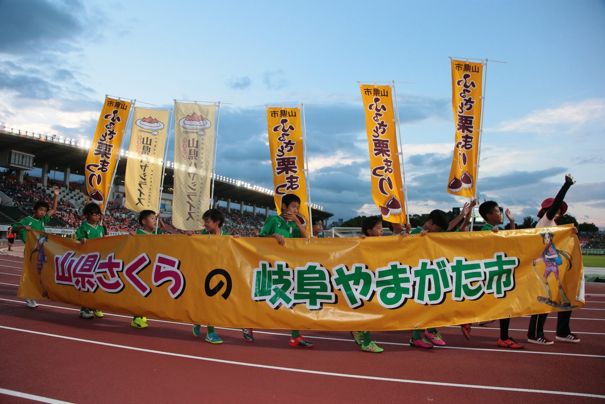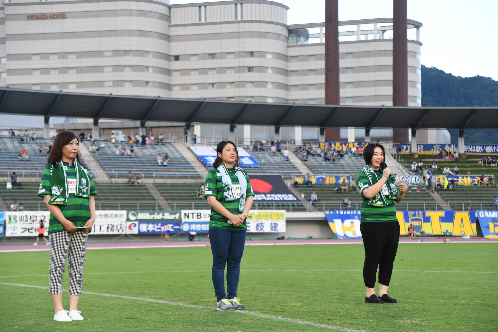郡上の白鳥おどりがスタジアムに登場!ギッフィーやGGGのメンバー、サポーターも参加して大盛り上がりでした!!