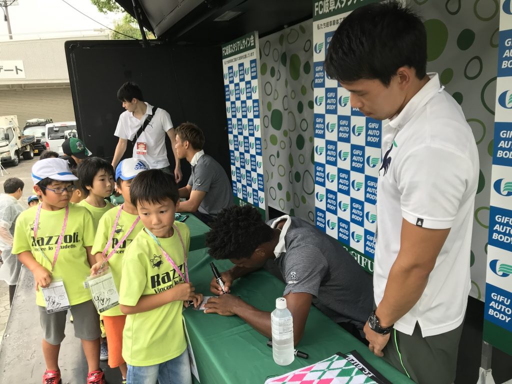 夢パスキッズ限定で、FC岐阜選手サイン会を開催!ミシャエル選手と藤谷匠選手が参加し、夢パスキッズの皆さんにサインを行いました!