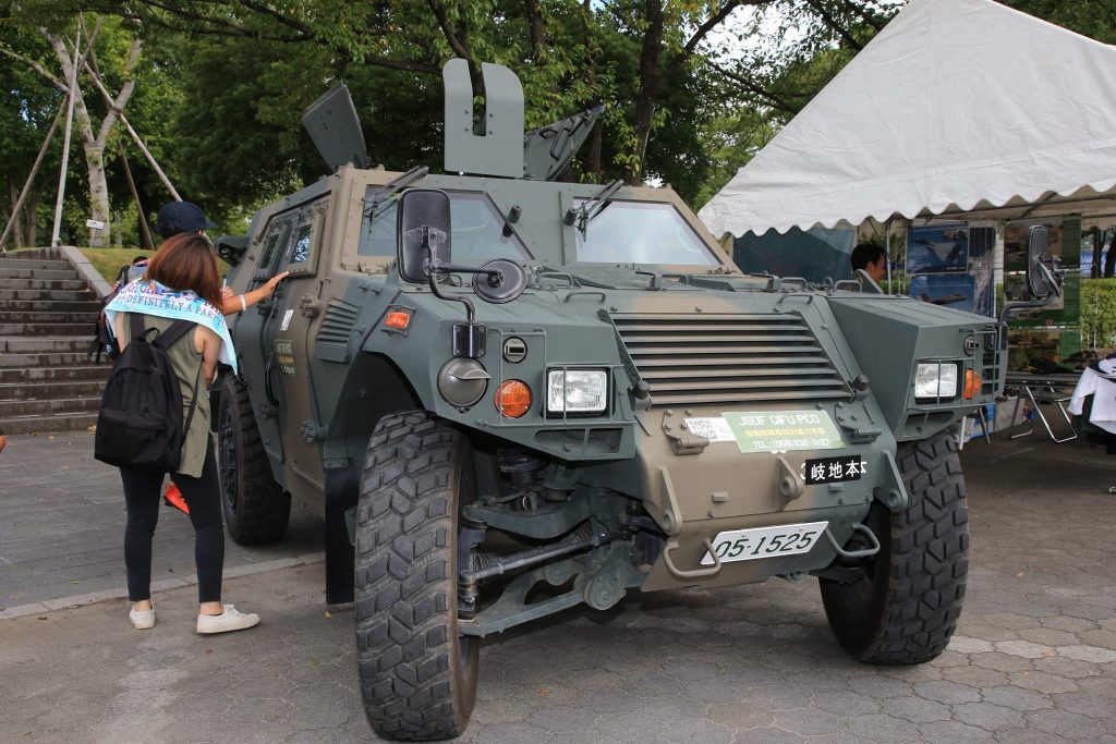 自衛隊の制服(陸海空)試着コーナーや自衛隊車両展示も展示されました。大迫力の自衛隊車両に子どもから大人まで大興奮でした!