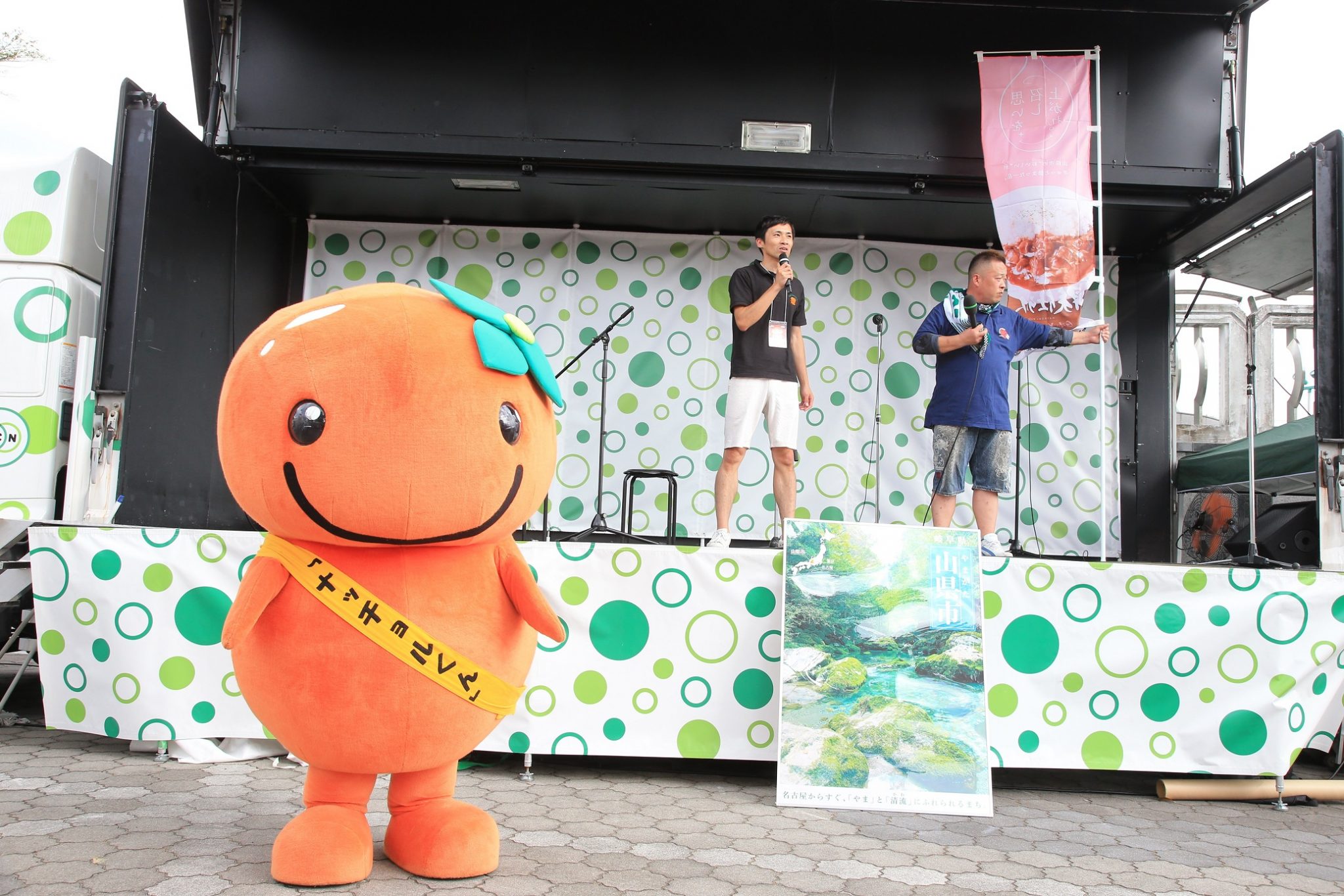山県市の観光地や特産品の紹介をしていただきました!会場には、山県市観光親善大使の「ナッチョルくん」も登場!