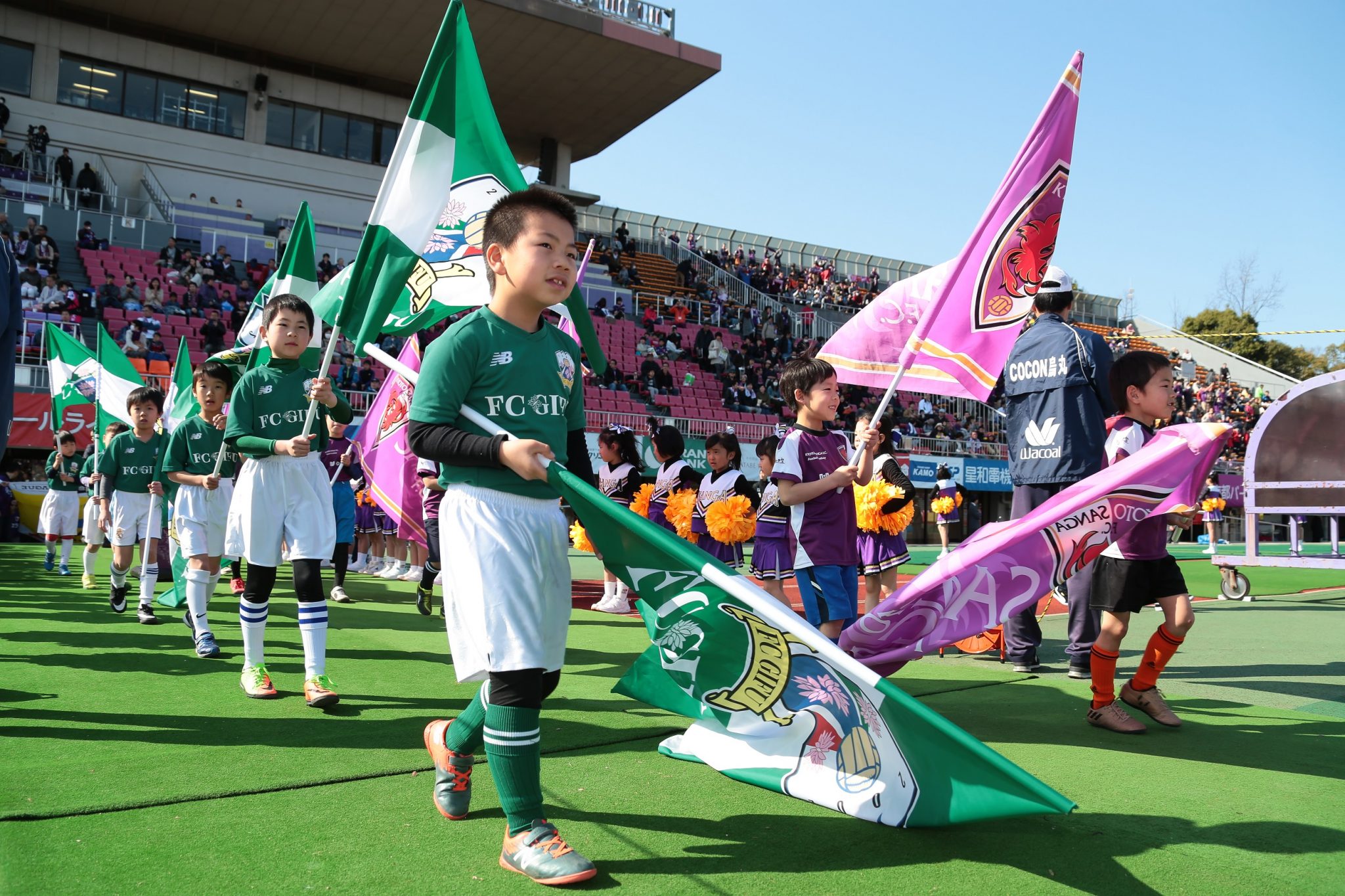 FC岐阜と京都サンガF.C.のサッカースクール生がマツリを記念し様々な交流を行います。
