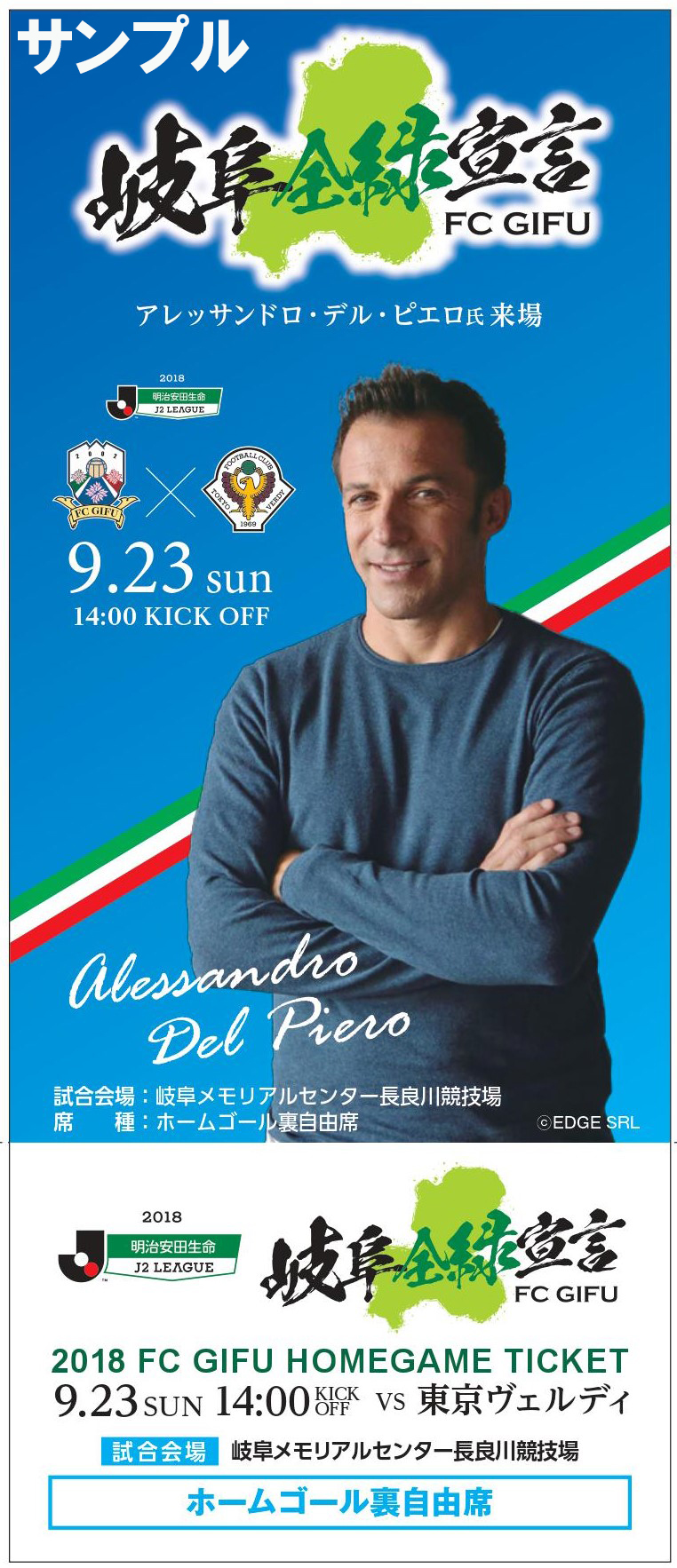 さらに、9月23日(日・祝)限定でFC岐阜×アレッサンドロ・デル・ピエロ氏スペシャルコラボグッズを販売!