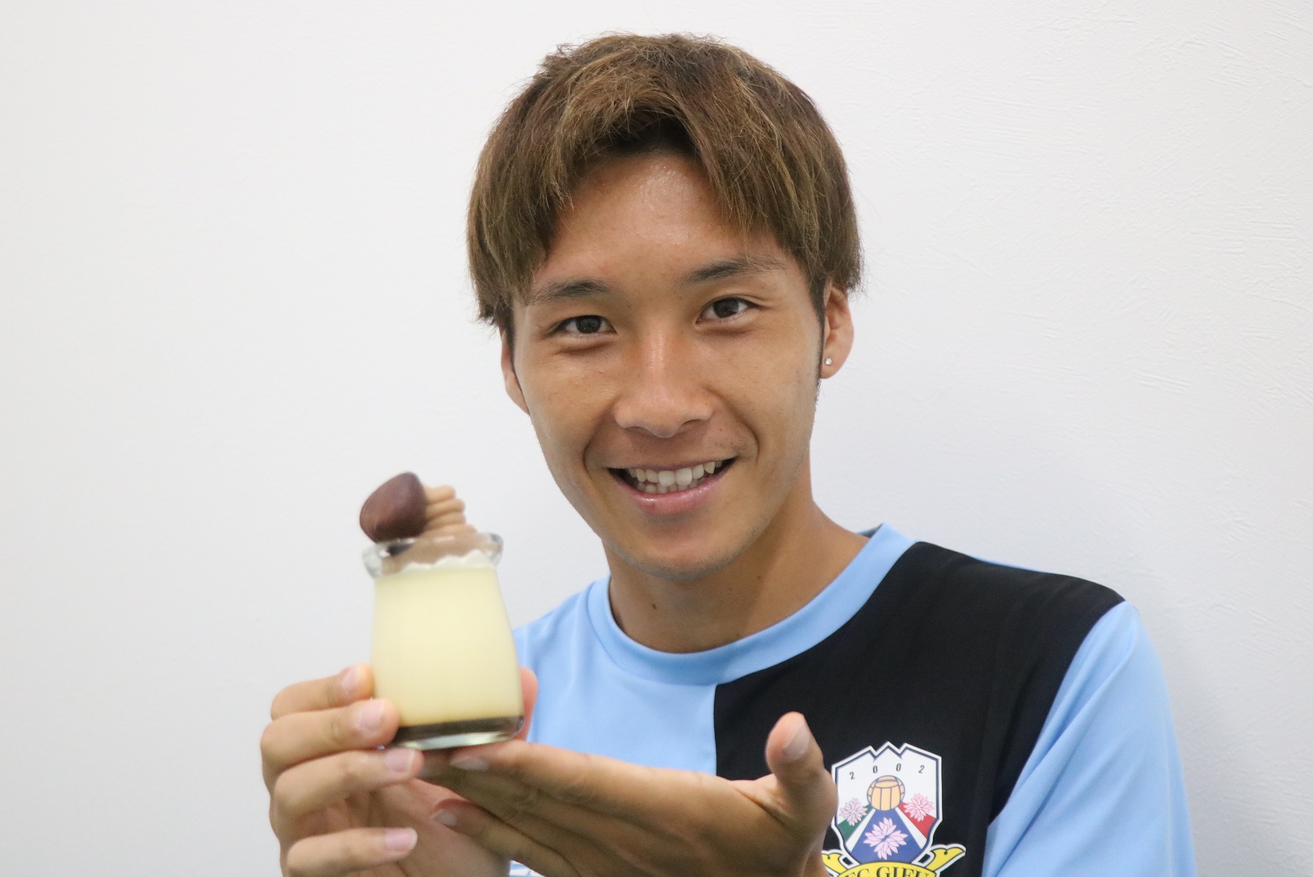 関市ホームタウン応援大使でもある山岸祐也選手とのコラボ商品。大人気の関ぷりんをベースにマロンペーストと渋皮栗をトッピング