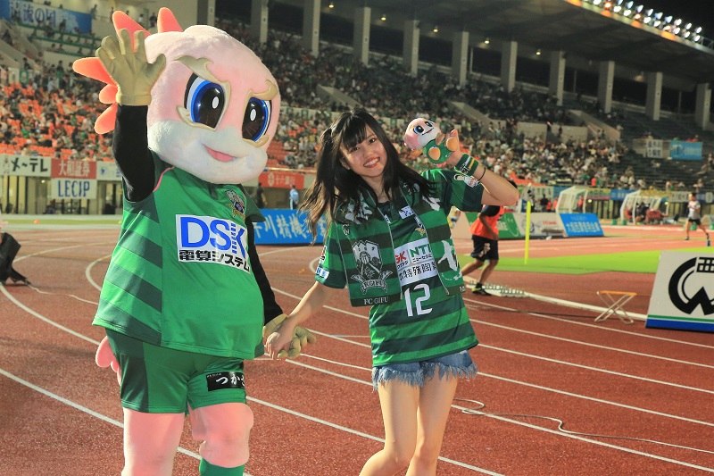 大宮戦はFC岐阜アンバサダーの町音葉さんも応援に駆けつけてくれました!各ブースでイベントを楽しんだり、入場のお出迎えや、ハーフタイムにはギッフィーと一緒にスタジアムを一周しました。