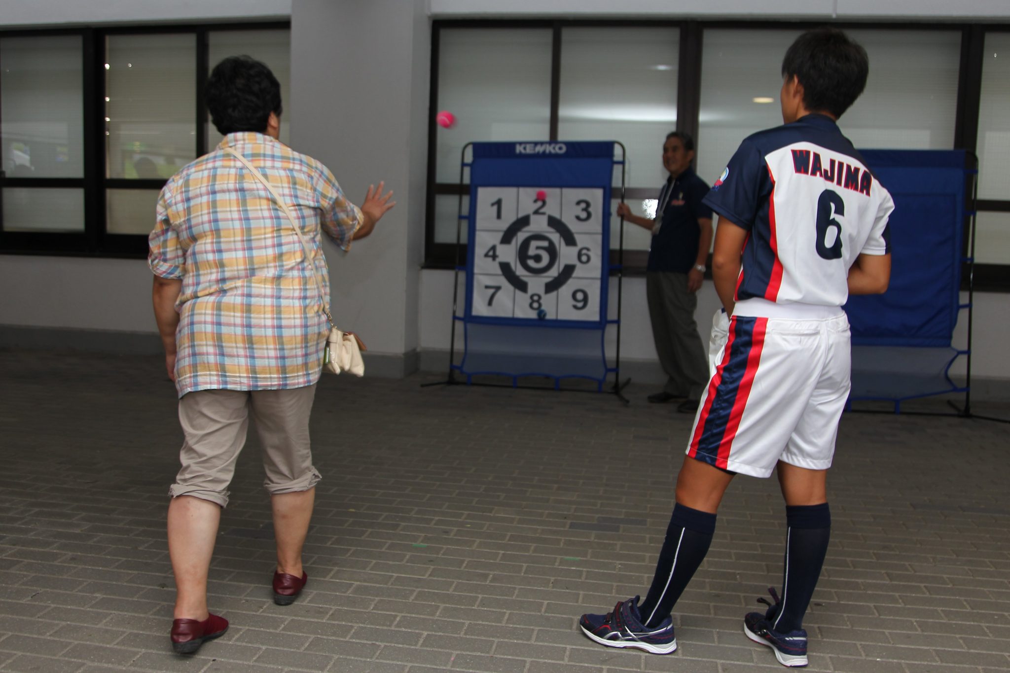 ボールを投げて、当たった数字の列が揃ったらポイントゲット。子どもから大人までみんなが楽しみました!