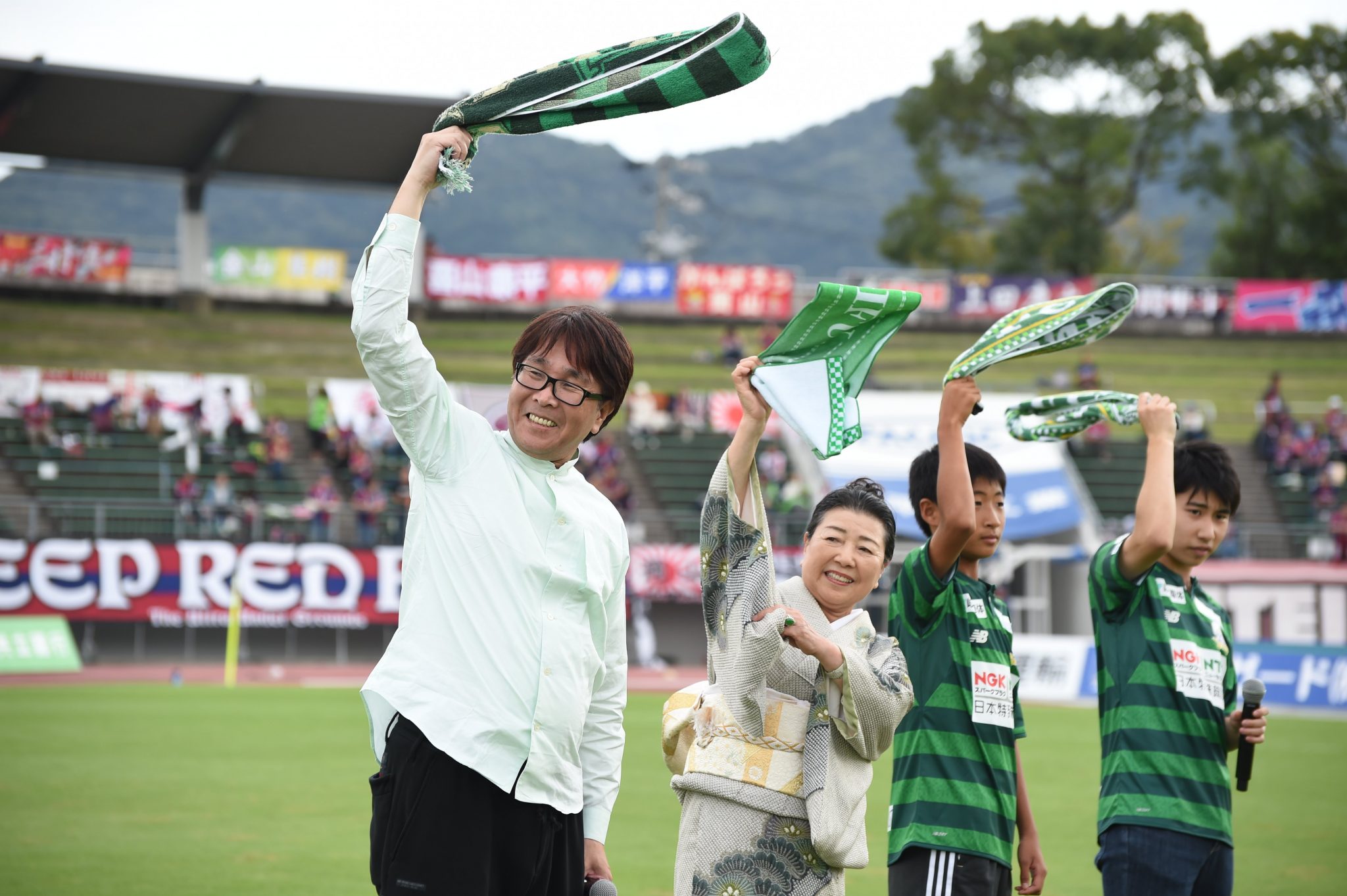 今シーズン「新時代を拓く」をスローガンに掲げるFC岐阜が、9月23日以降のホームゲームラスト5試合を全力でスタジアムを盛り上げるべく「岐阜全緑宣言」としてスペシャルな企画を実施!第2弾として、『キャプテン翼』原作者で漫画家の高橋陽一先生が長良川に来場しました!