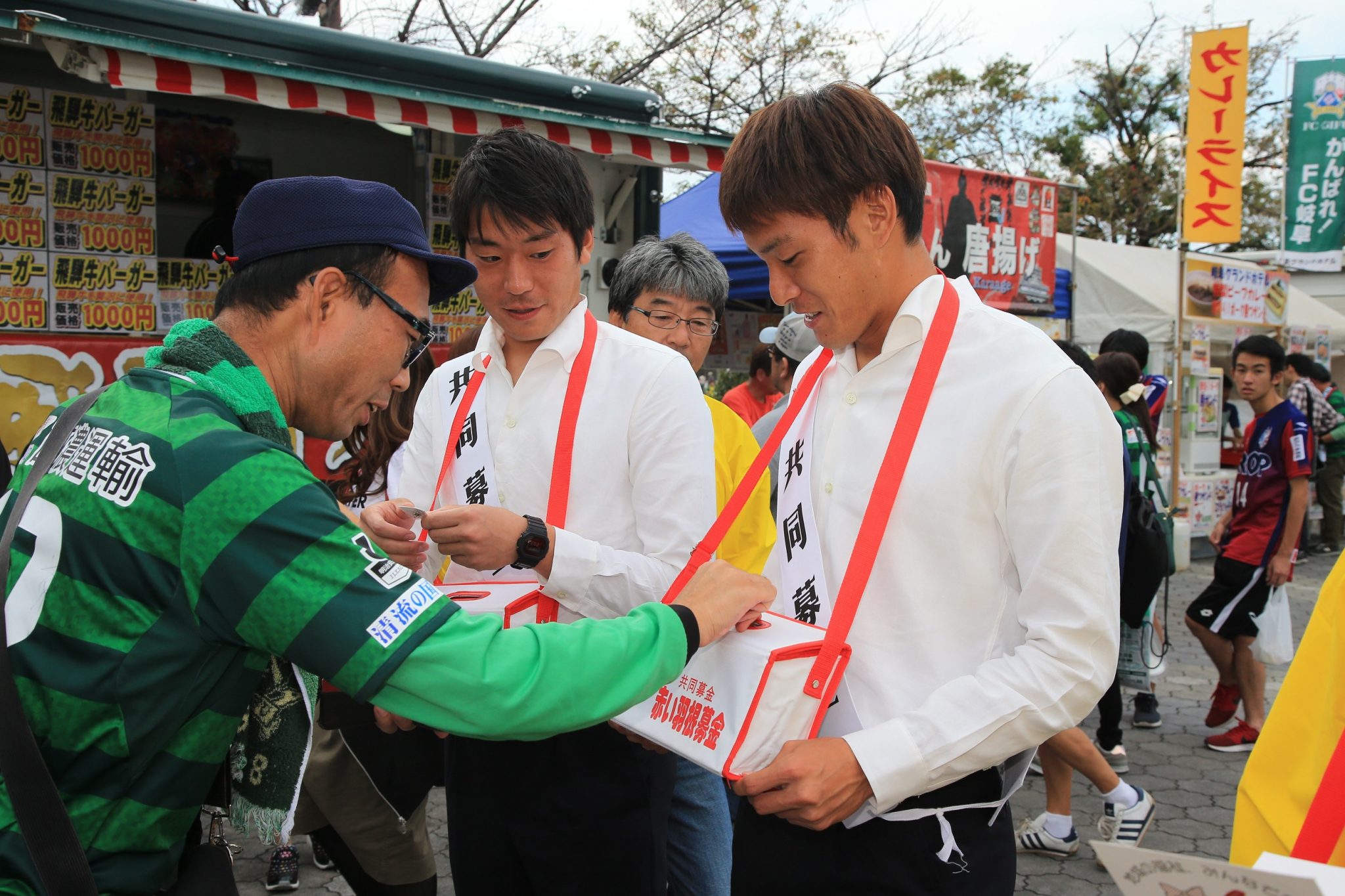 FC岐阜からは藤谷匠選手と岡本享也選手の2名が募金活動に参加しました。