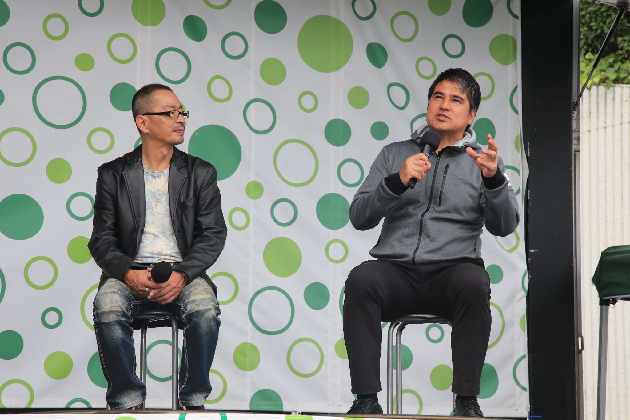 元Jリーグ選手の戸塚哲也さんと永島昭浩さんによるトークショーも開催されました。参加されたサッカー教室の感想や今後のサッカー界についてなど、お二人とも軽快なトークで会場を盛り上げていただきました。