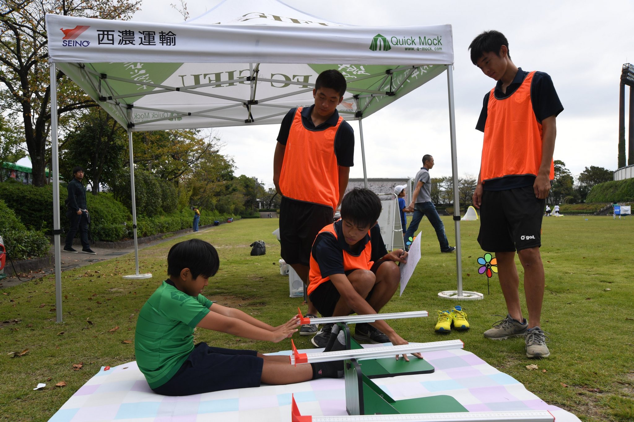 芝生広場では「FC岐阜ふわふわドーム」や「体力測定ブース」、「段ボールキャタピラー遊び」がおこなわれました。