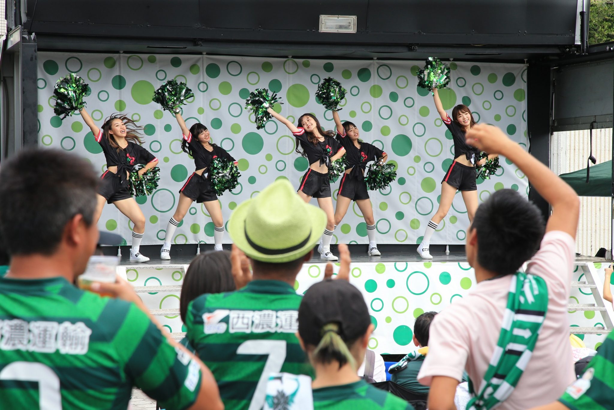 FC岐阜とエイベックスがコラボした大人のチアダンスチーム「トリプルジー」によるパフォーマンスです。