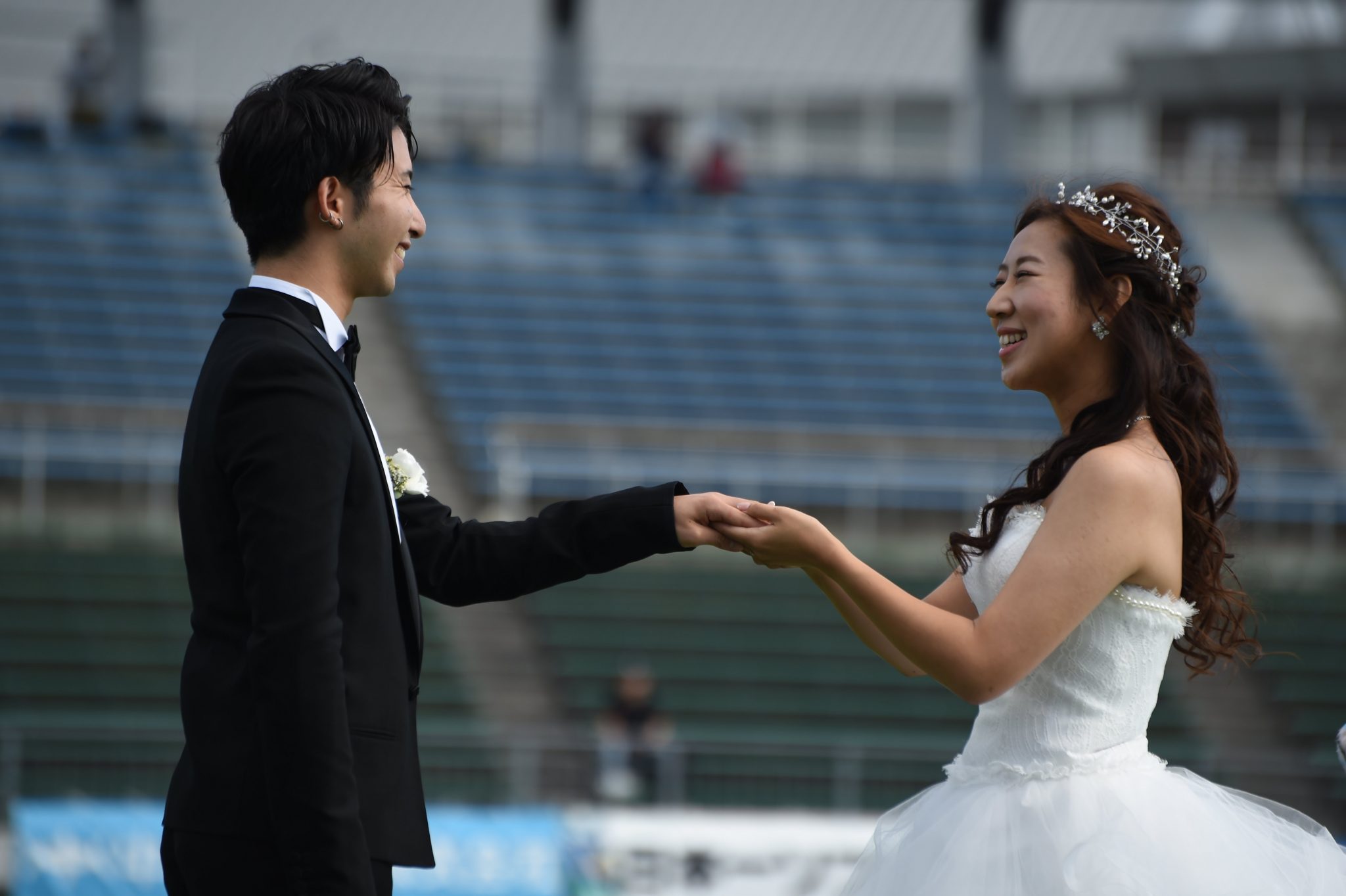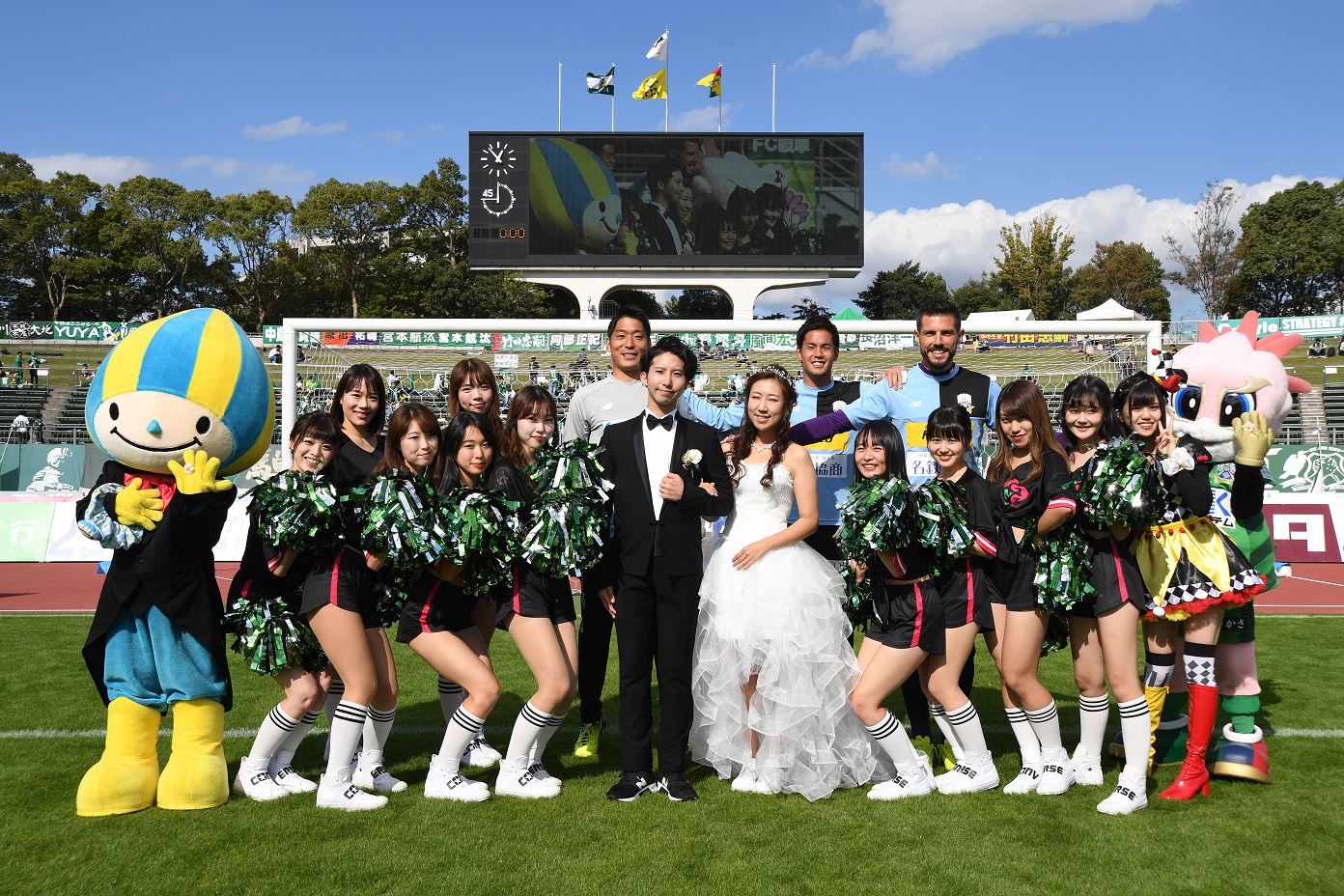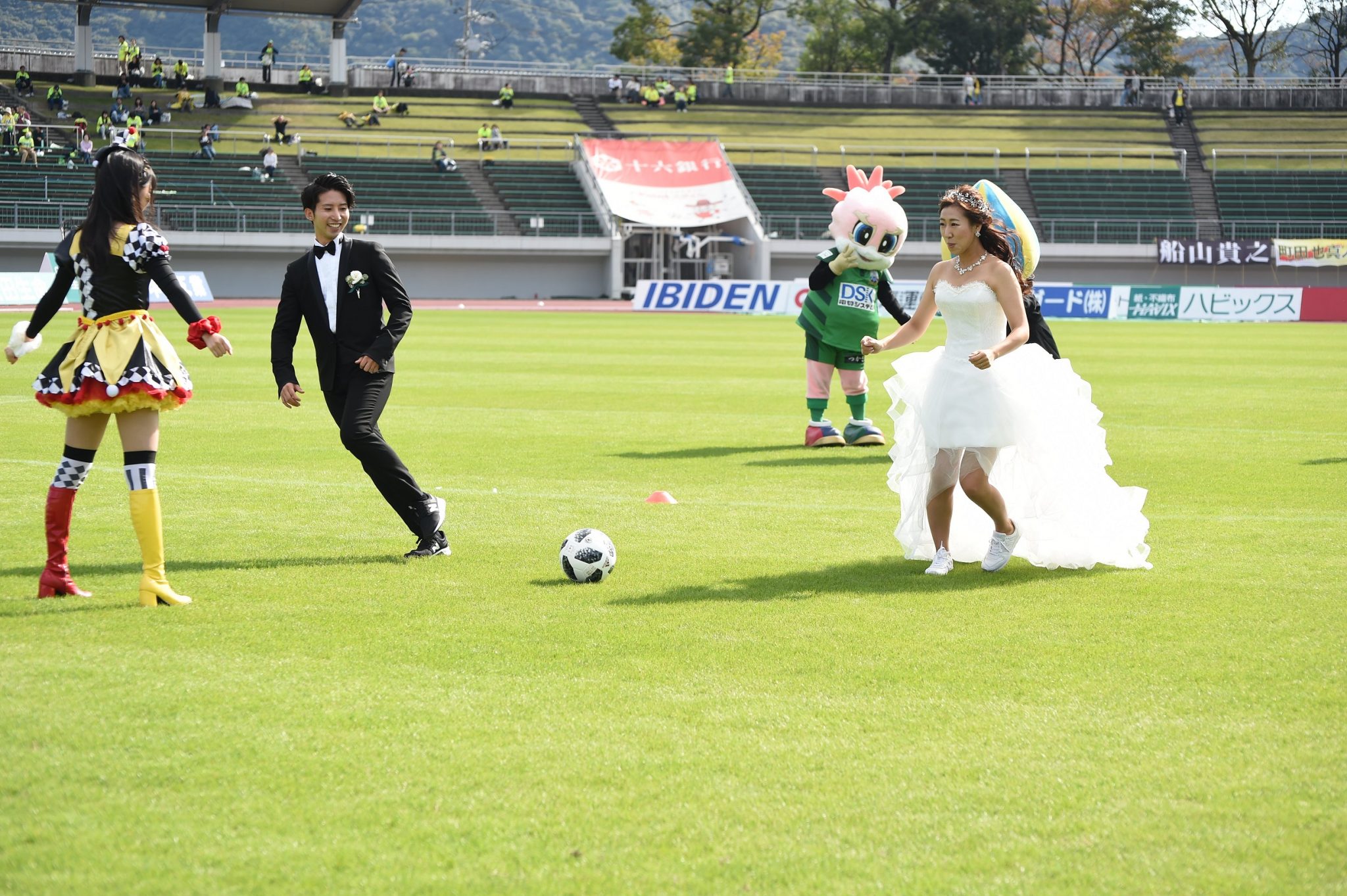 スタジアム観戦で愛をはぐくんだFC岐阜サポーターお二人のスタジアム結婚式が行われました。