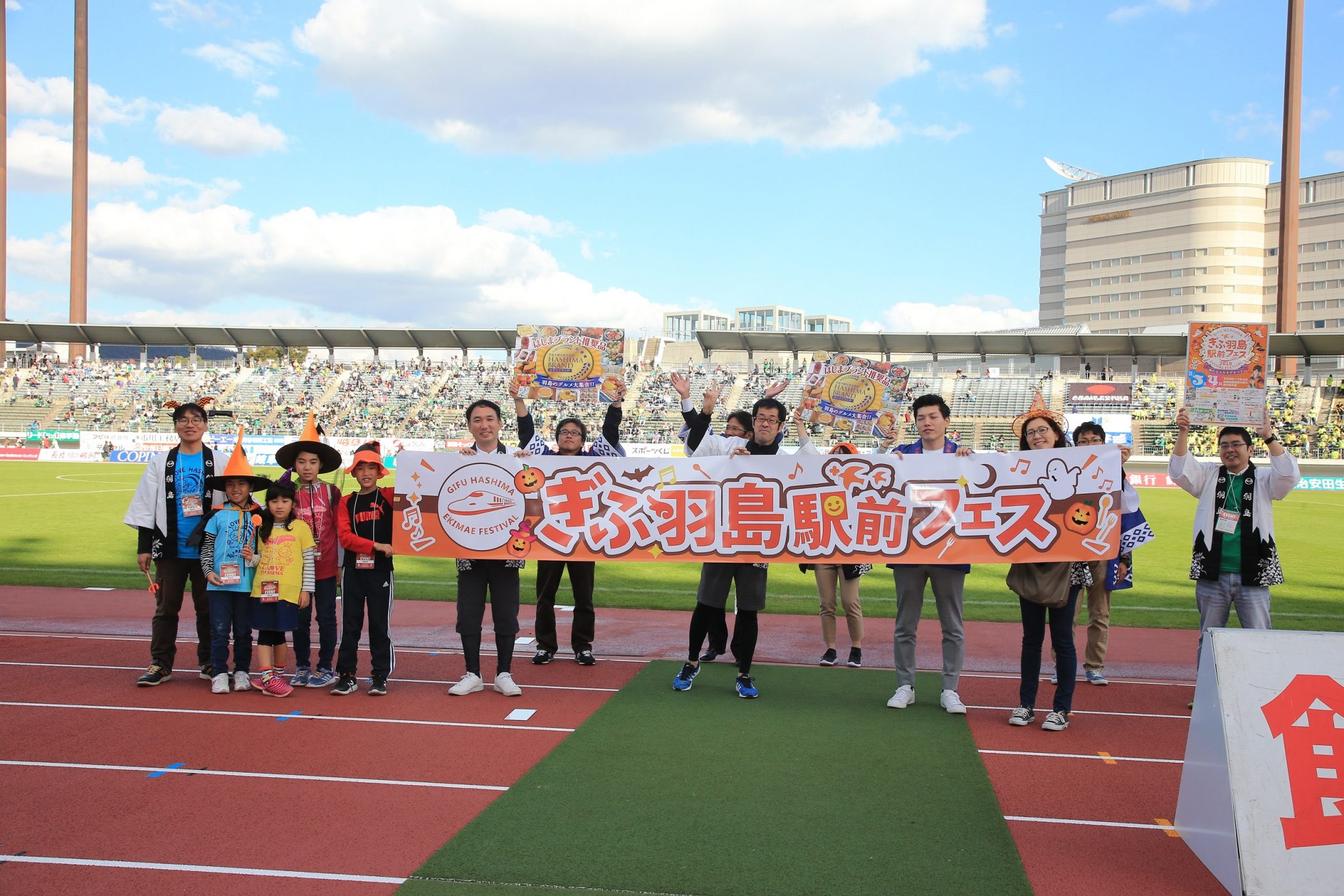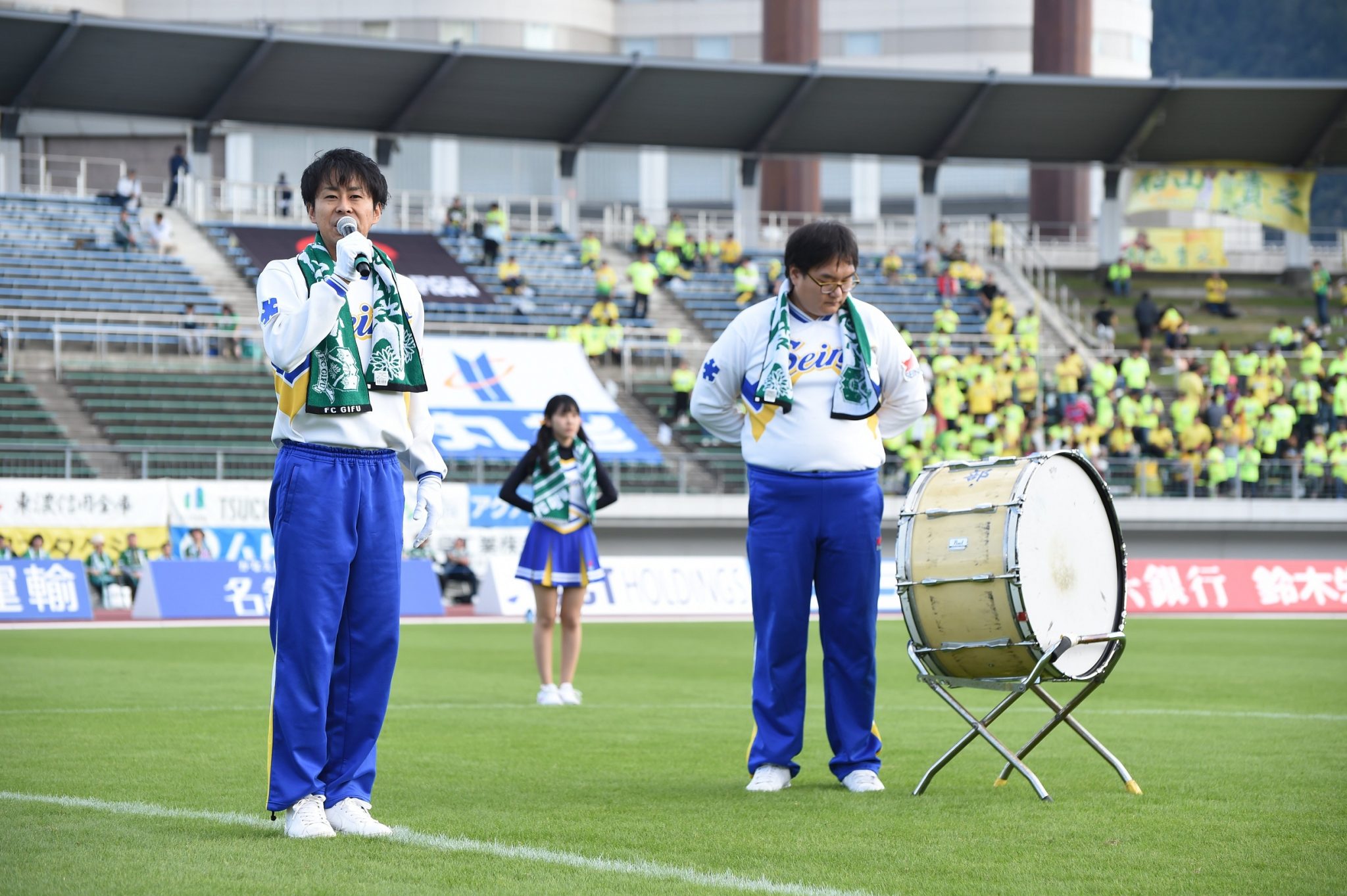 ハーフタイムにはスタジアム内を一周。岐阜サポーターだけではなく、ジェフユナイテッド千葉サポーターからも祝福の声援が送られました。