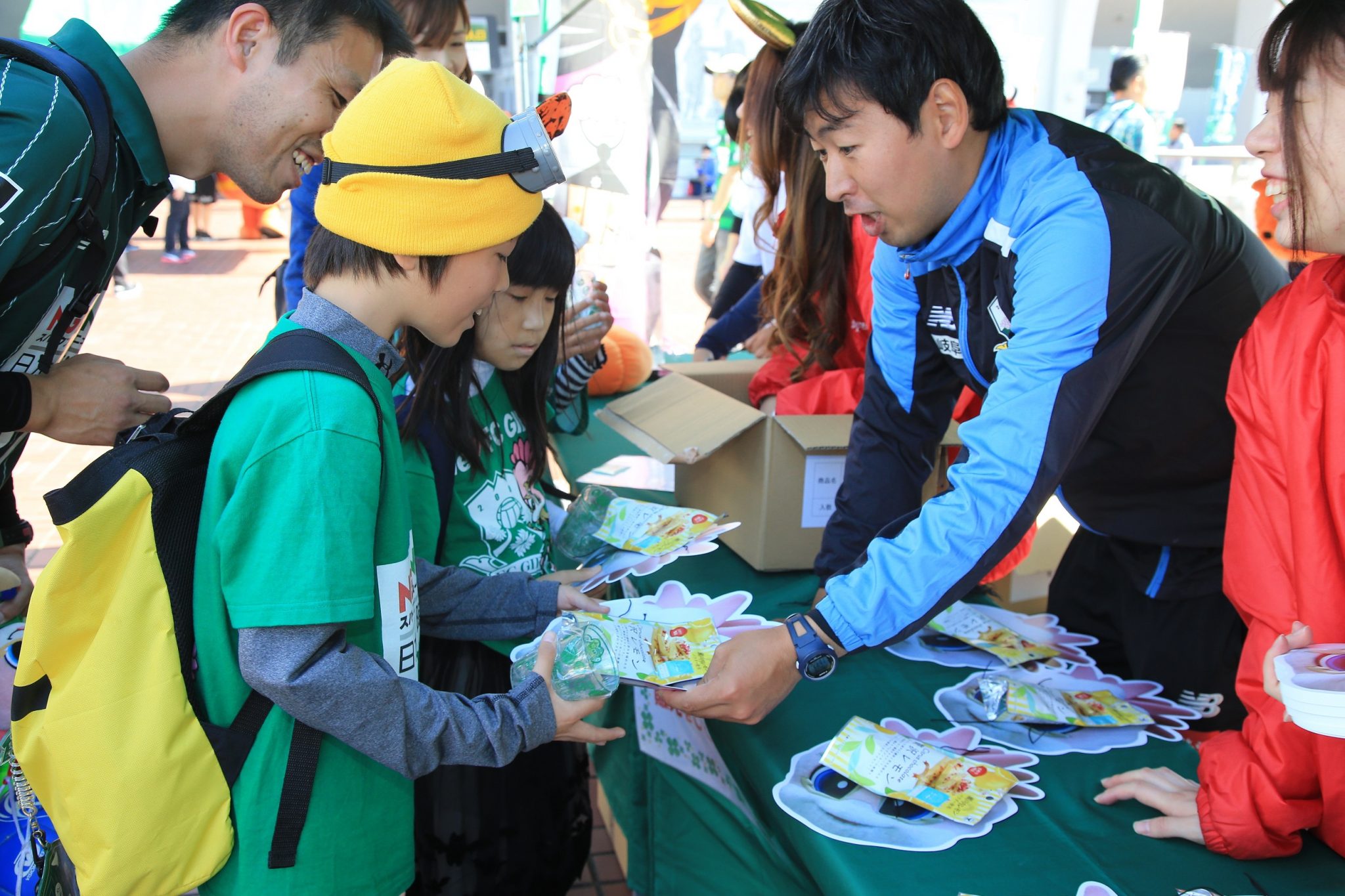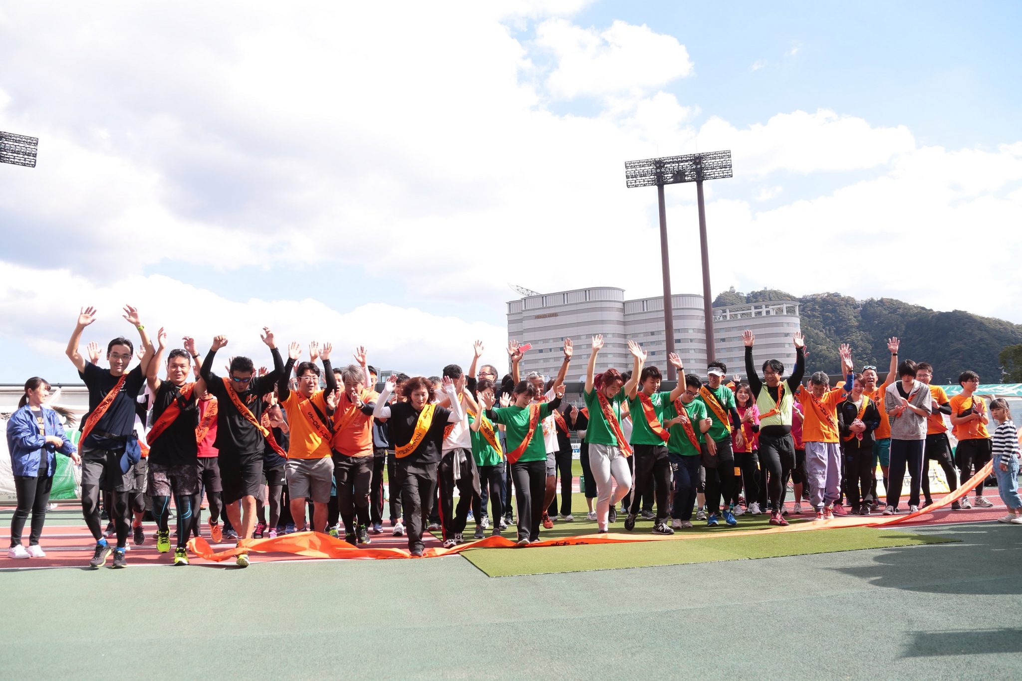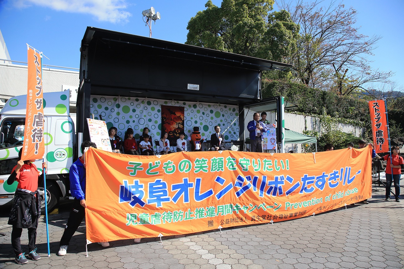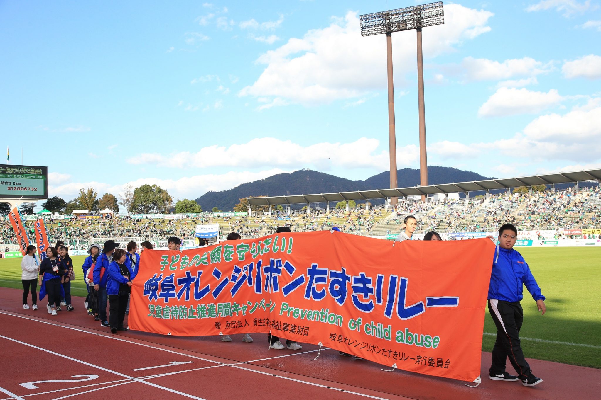 この日、多治見市や羽島市などから出発した4つのコース、計約110キロを参加者の皆さんでたすきを繋ぎ、スタジアムでゴール!ステージやハーフタイムのキャラバンなど、子ども虐待防止を広める様々な活動が行われました。