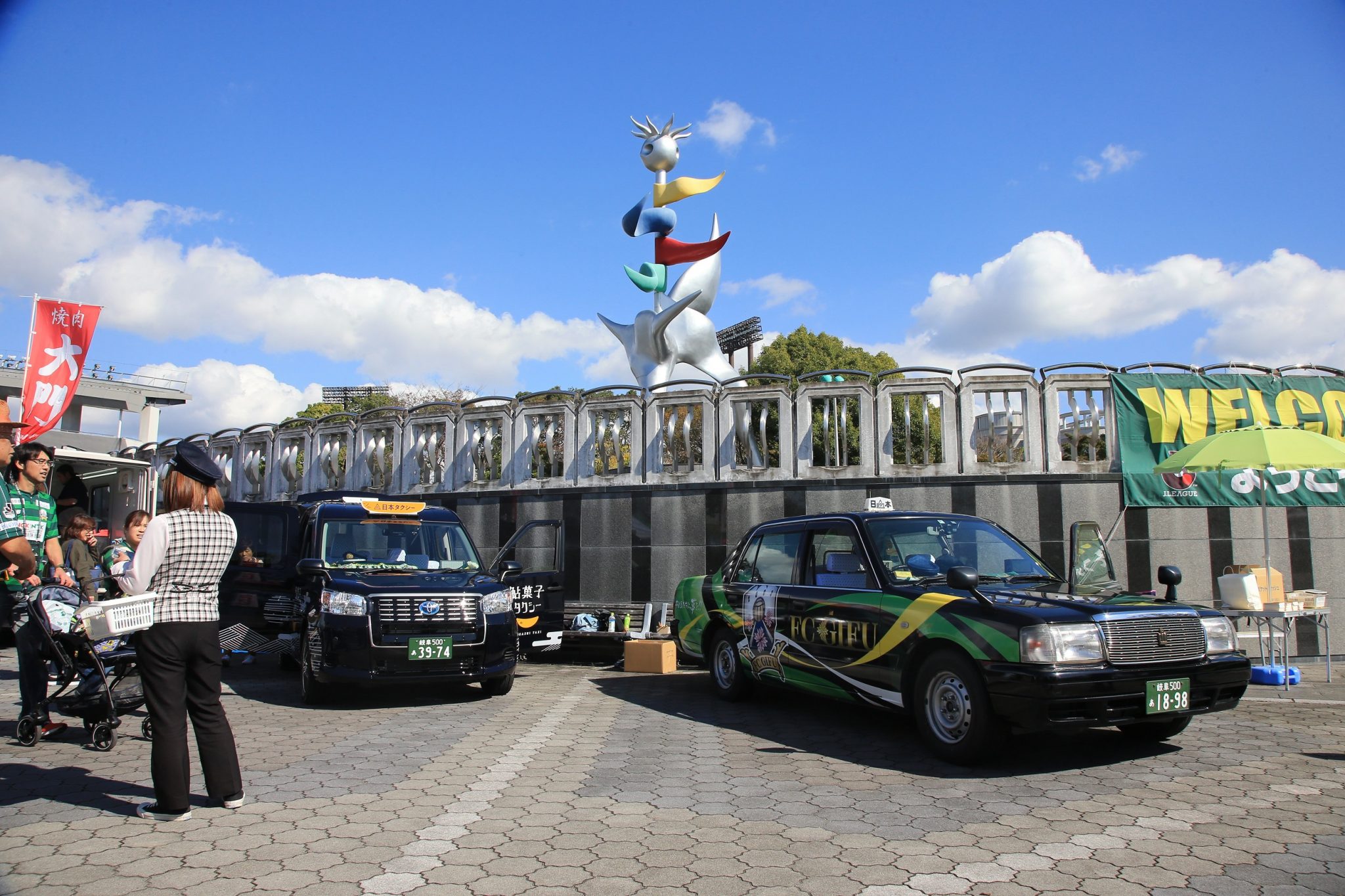 ◆「日本タクシー」FC岐阜ラッピングタクシー展示