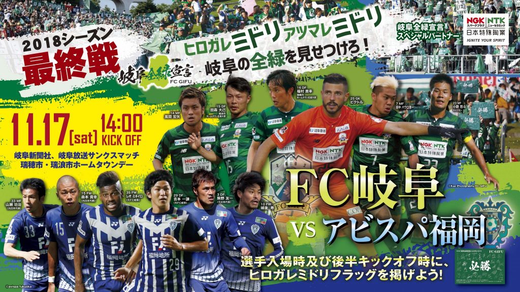 2018シーズン最終戦 11/17(土)14:00 vsアビスパ福岡 、試合イベント情報