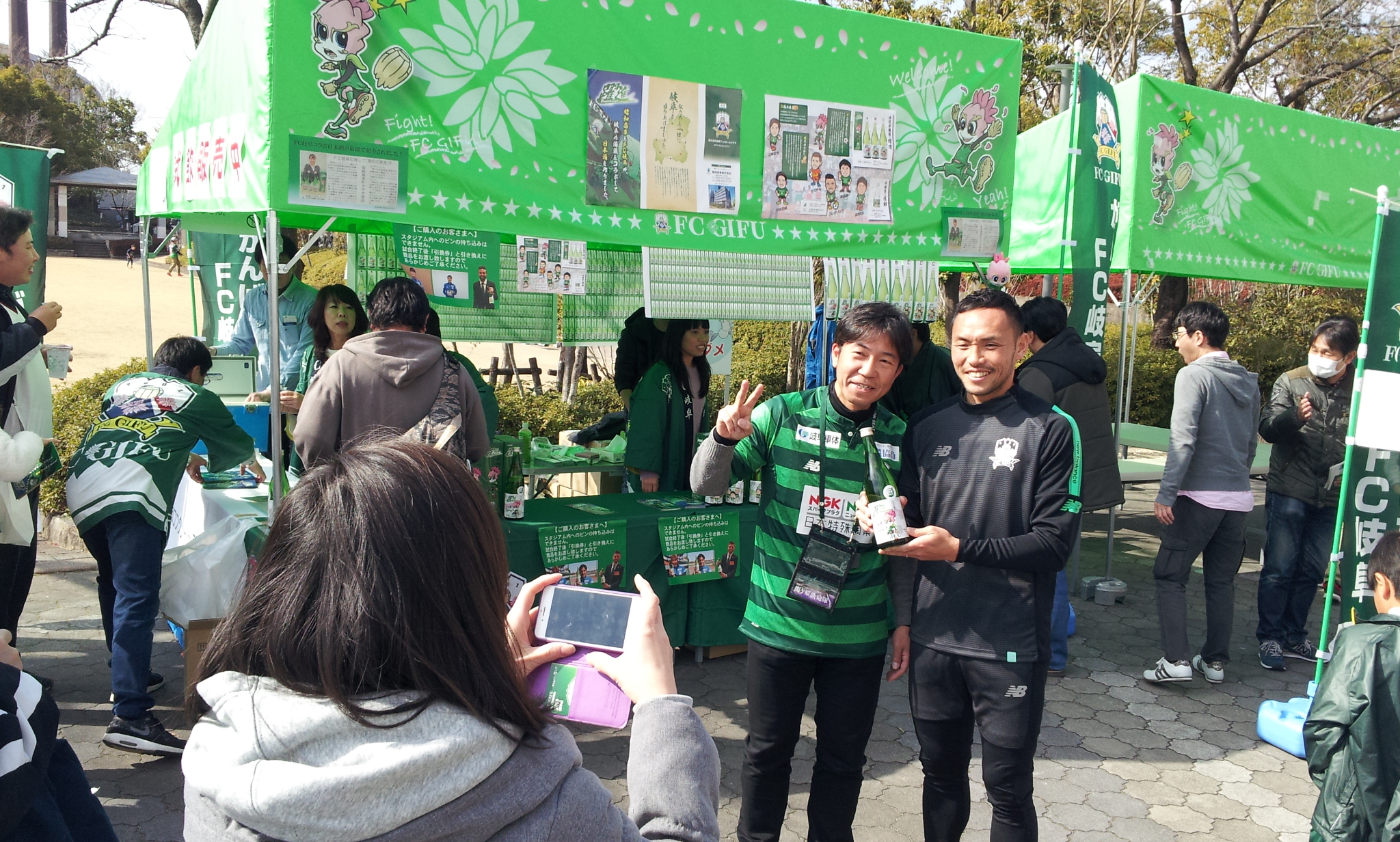 ◆FC岐阜選手と伊藤寧々さん・長尾しおりさん・ギッフィー・ミナモとの写真撮影会