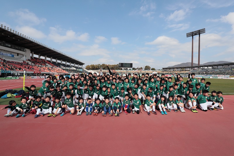 FC岐阜のサッカースクールに通う子どもたちが長良川競技場のピッチで交流戦をおこないました。