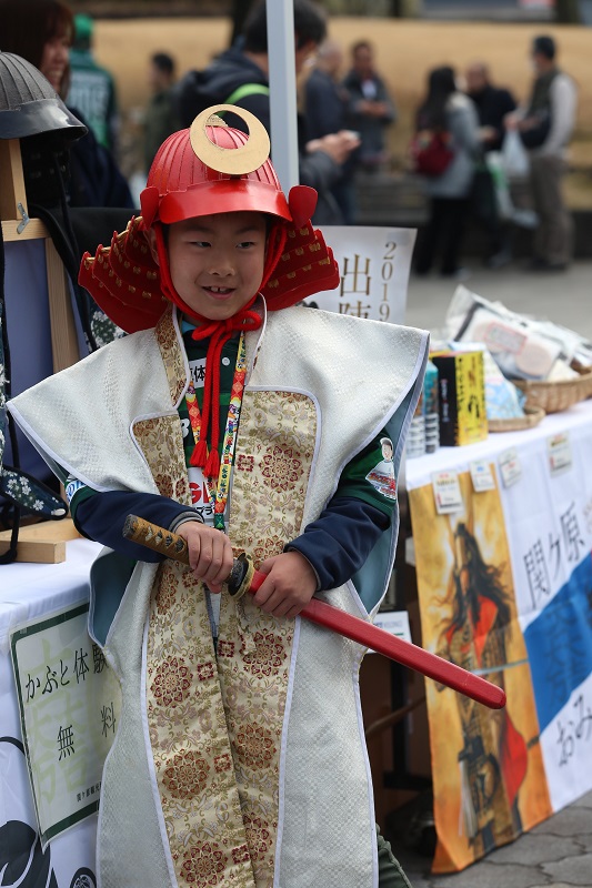 関ケ原町のブースでは、兜かぶり・甲冑体験ができるとあって、多くの子どもたちで賑わいました!