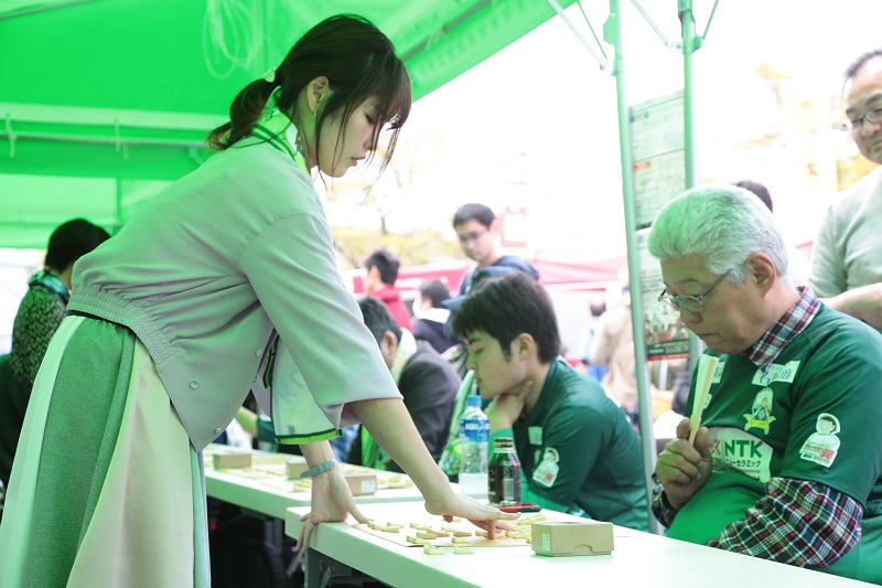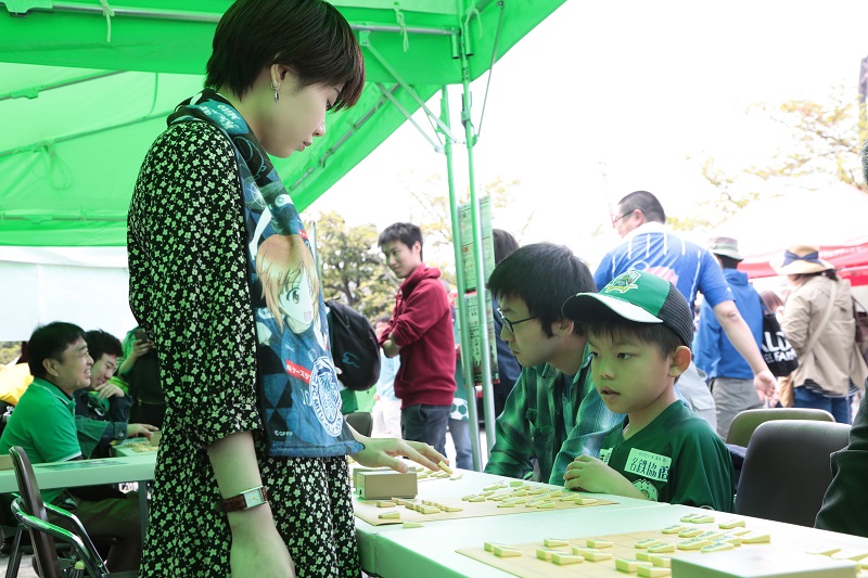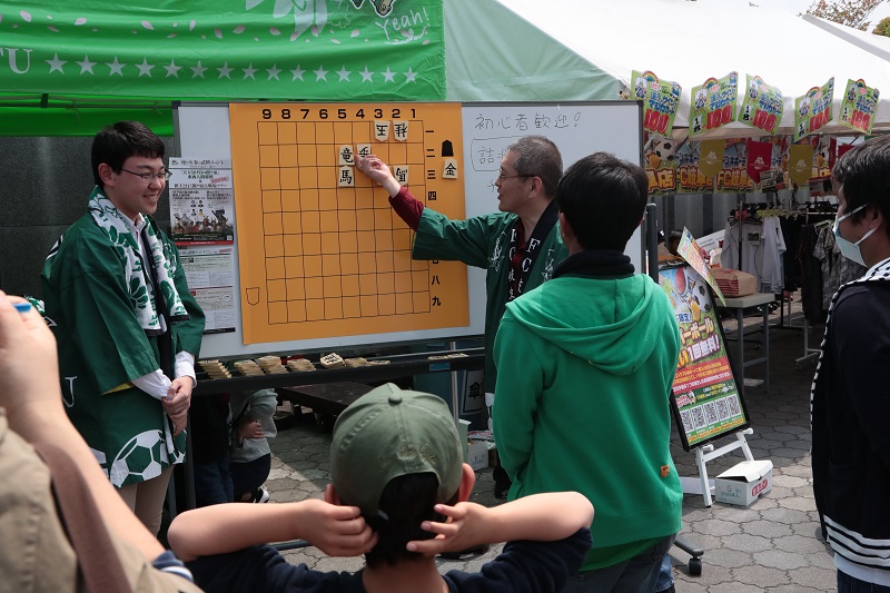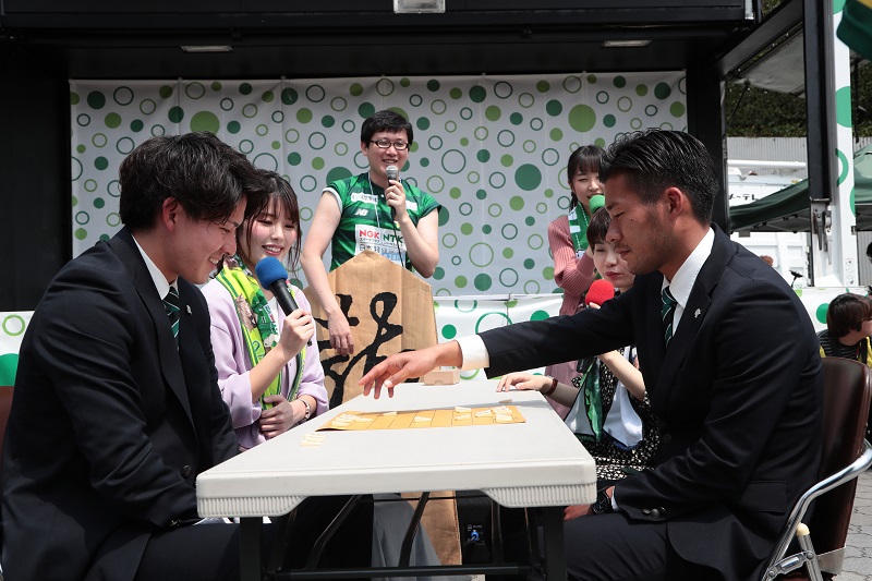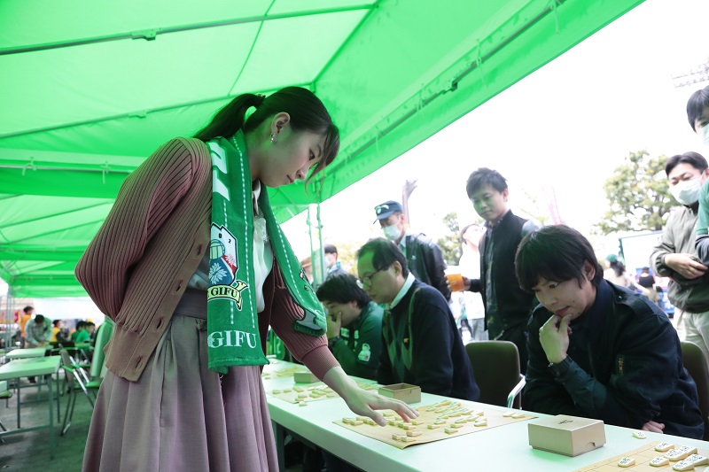 女流棋士とFC岐阜の小野悠斗選手、柳澤亘選手がそれぞれペアになり公開で対局をおこないました。