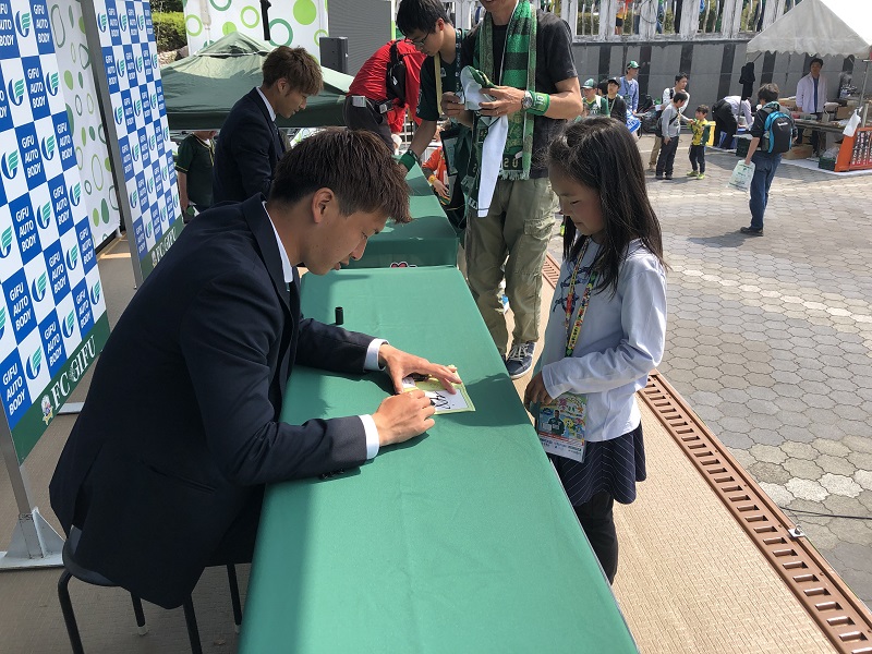 ファンクラブ限定で、先着100名様を対象にサイン会を開催。今回は北谷史孝選手、山岸祐也選手が参加しました。