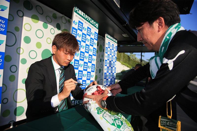 ファンクラブ限定で、先着100名様を対象にサイン会を開催。今回はライアン選手と、新しく加入した市丸瑞希選手が参加しました。