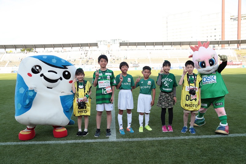 事前募集で集まった子どもたちがスタジアムの色んなお仕事を体験しました。