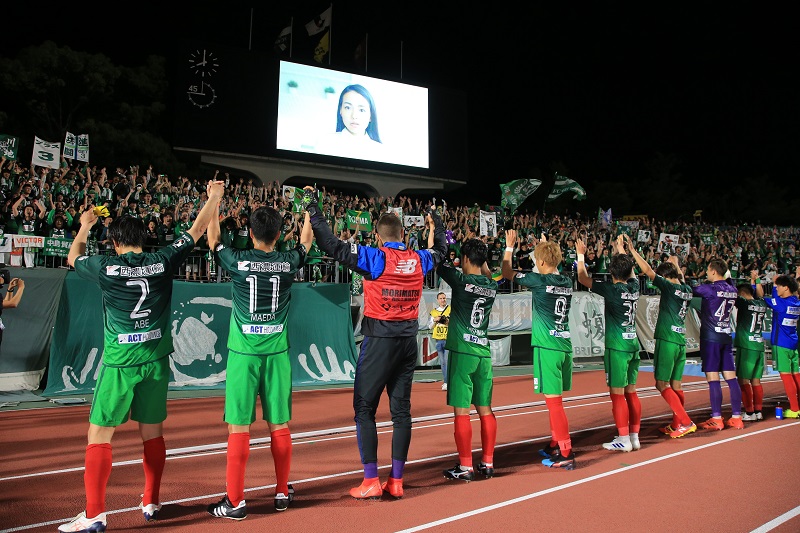 前田遼一選手、永島悠史選手のゴールで見事勝利し、勝利のハイタッチを行うことができました!