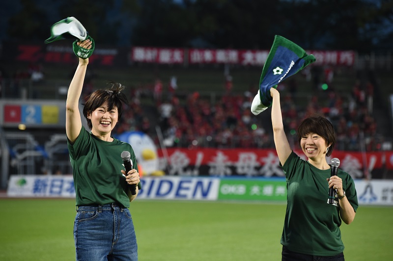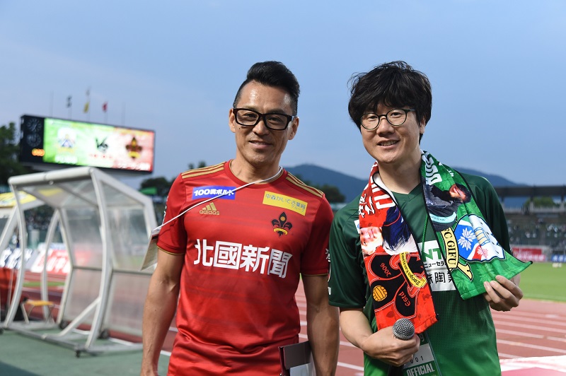 FC岐阜スタジアムDJの久世良輔さんとツエーゲン金沢スタジアムDJの大平まさひこさんによる選手紹介も実施されました!