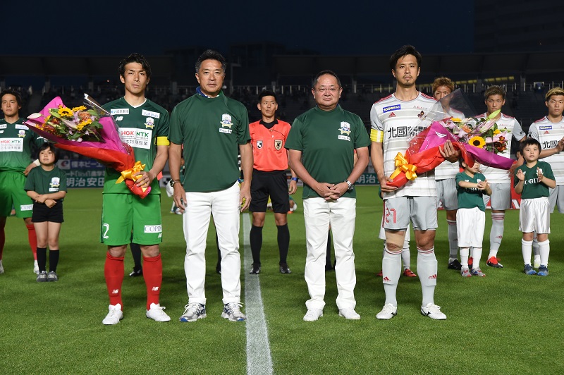 試合の勝敗や入場者数、アンバサダーPK対決などで争う白山ダービー5番勝負!「~長良川の陣~」の結果は1勝1分1敗。