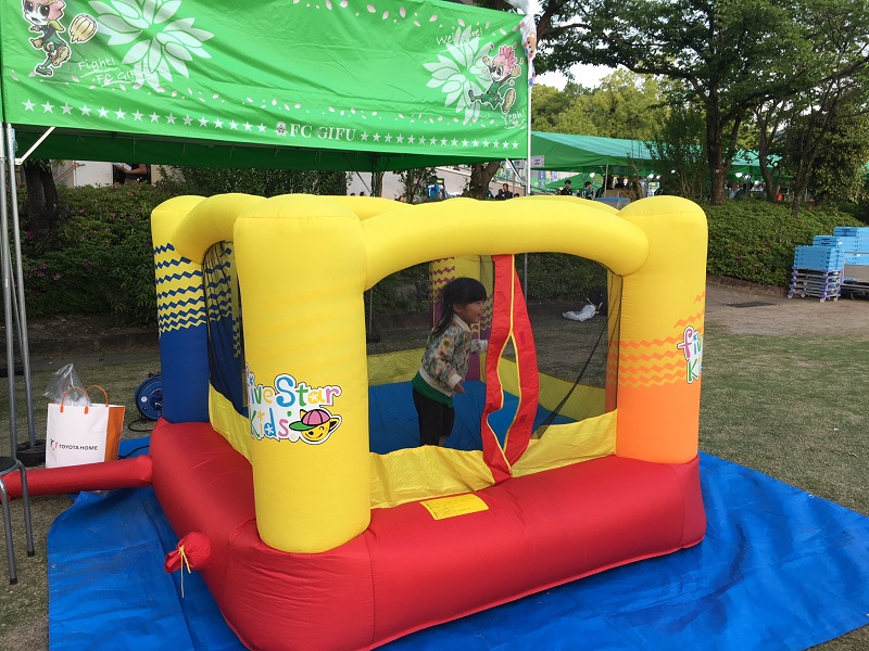 子どもに大人気のふわふわが登場!小さなお子さんも楽しそうに遊んでいました♪
