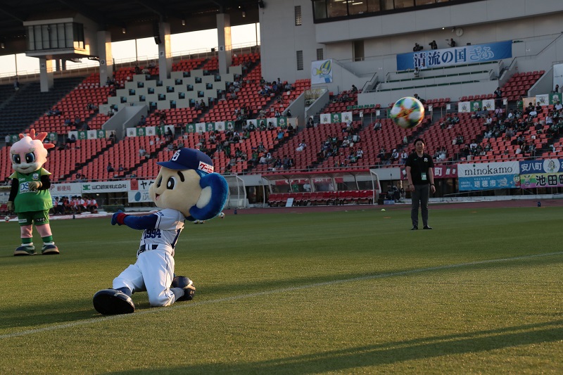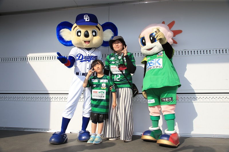 中日ドラゴンズのマスコット「ドアラ」が登場し、ステージでの写真撮影会やお出迎え、センターサークル応援団、キックインセレモニーなど様々な場面で会場を盛り上げてくれました!