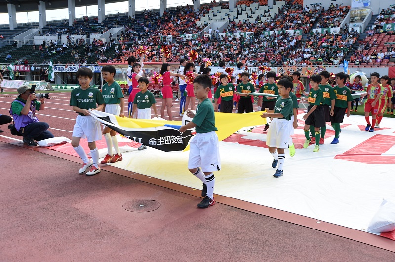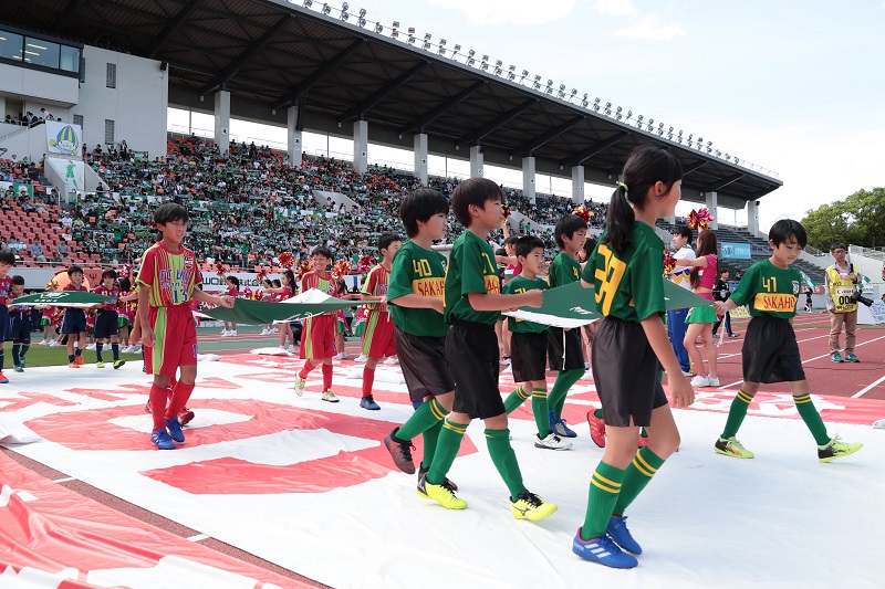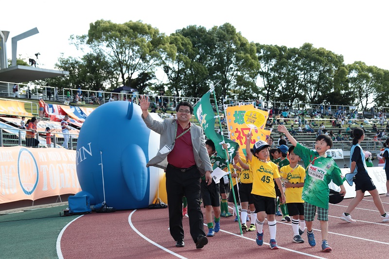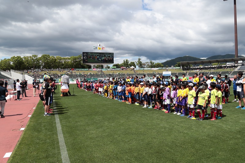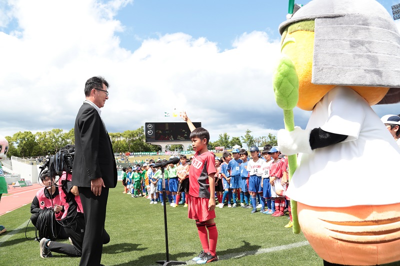 小学校低学年児童を対象としたサッカー大会「みのっ太カップ少年サッカー大会」の開会式がピッチで行われました。