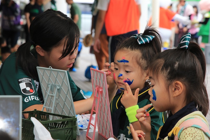 FC岐阜カラーのフェイスペイントができるブースでは、みなさん自由にペイントをして楽しんでいました♪
