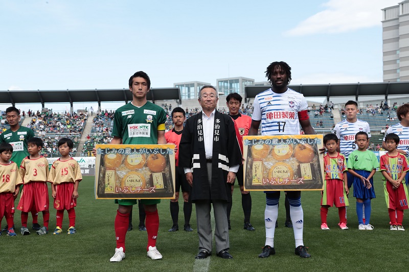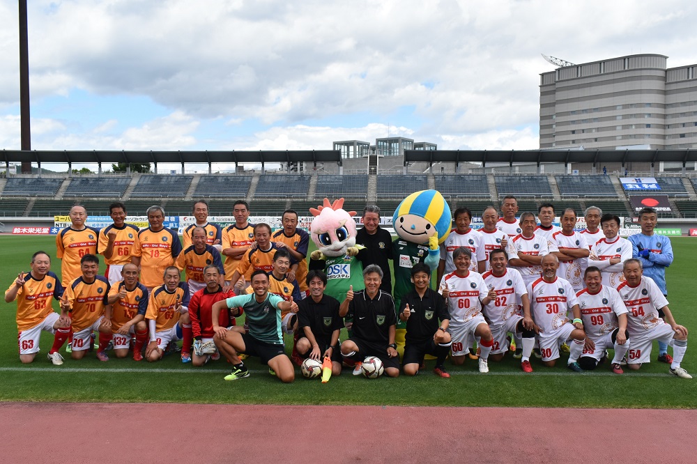 試合前のピッチでは、岐阜サッカーOB会による試合がおこなわれました。