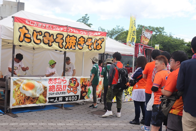 多治見市からは「たじみそ焼きそば」が出店。さらにモザイクタイルのワークショップや販売会、多治見トラックの展示もおこなわれました。