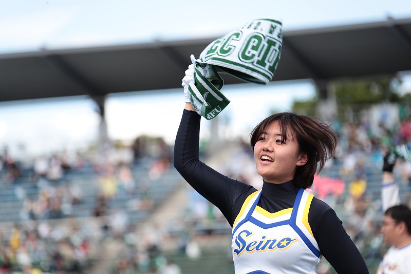 西濃運輸 代表取締役社長 神谷 正博 様・応援部チアリーダー 武山 美乃里 様より記念品の贈呈をいただきました。