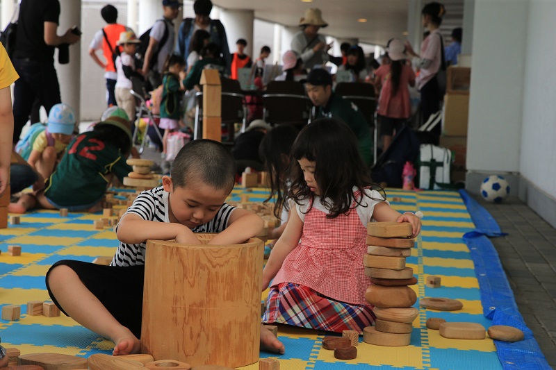 夢パスひよこの小さなお友達が楽しめる木のおもちゃ広場が登場。みんな夢中で遊んでいました!